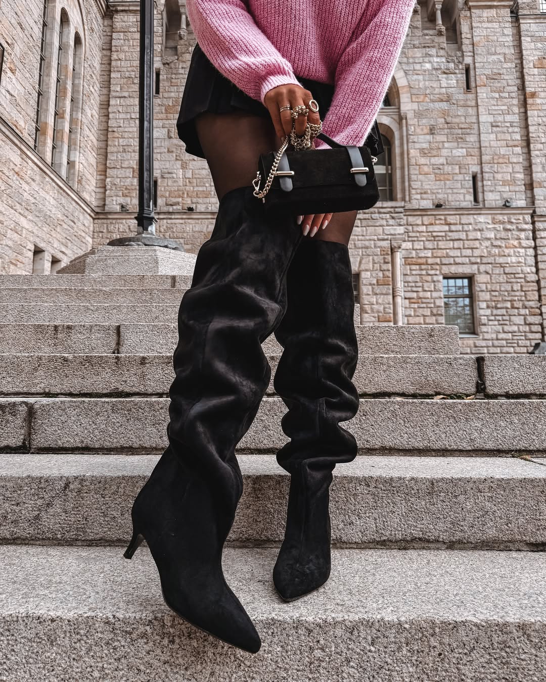 moteriški ilgaauliai batai Įsispiriamo modelio su plonais kulniukais Su Siuvimu...