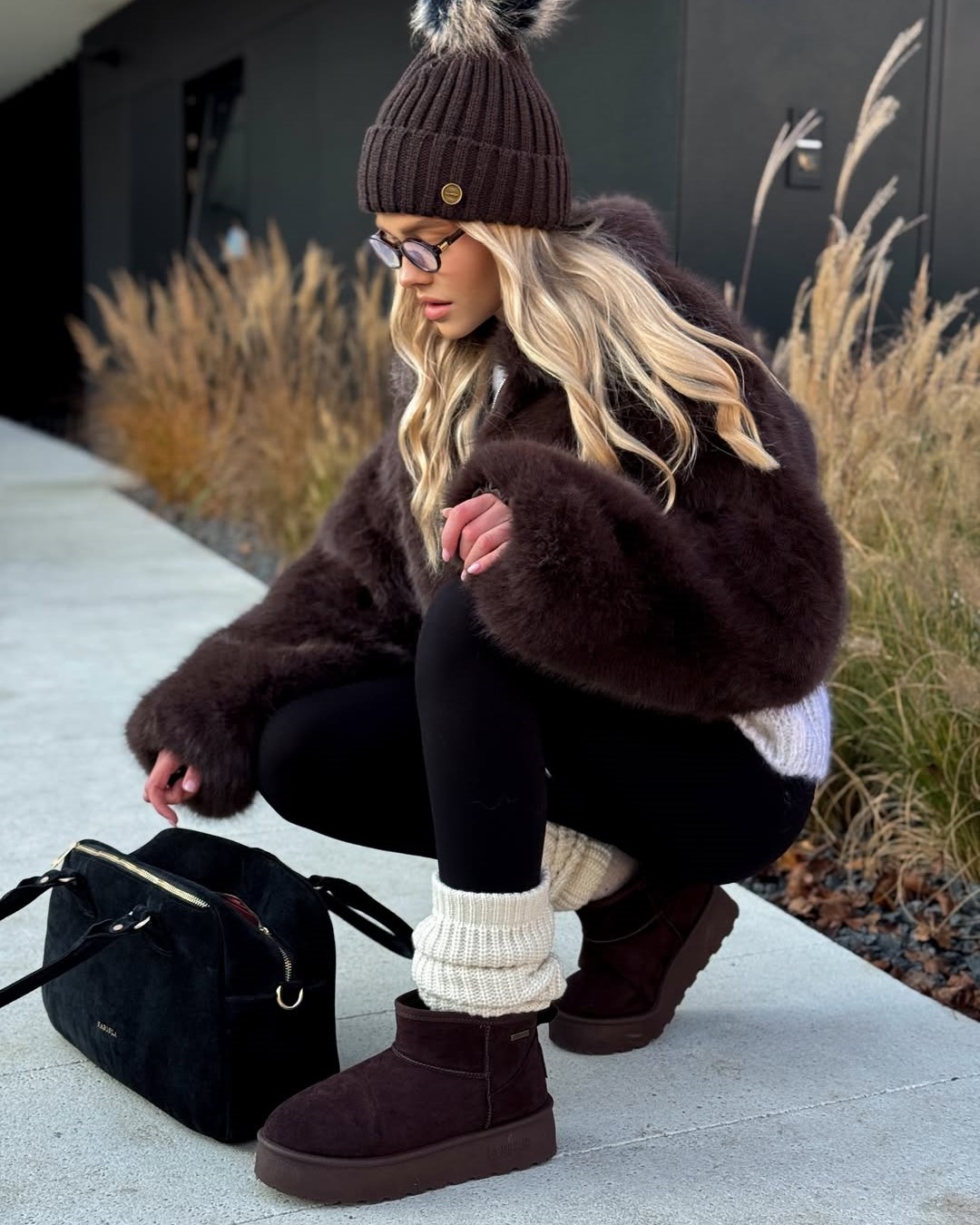 sniego batai Moteriškos žemos su platforma rudos spalvos Yrenna