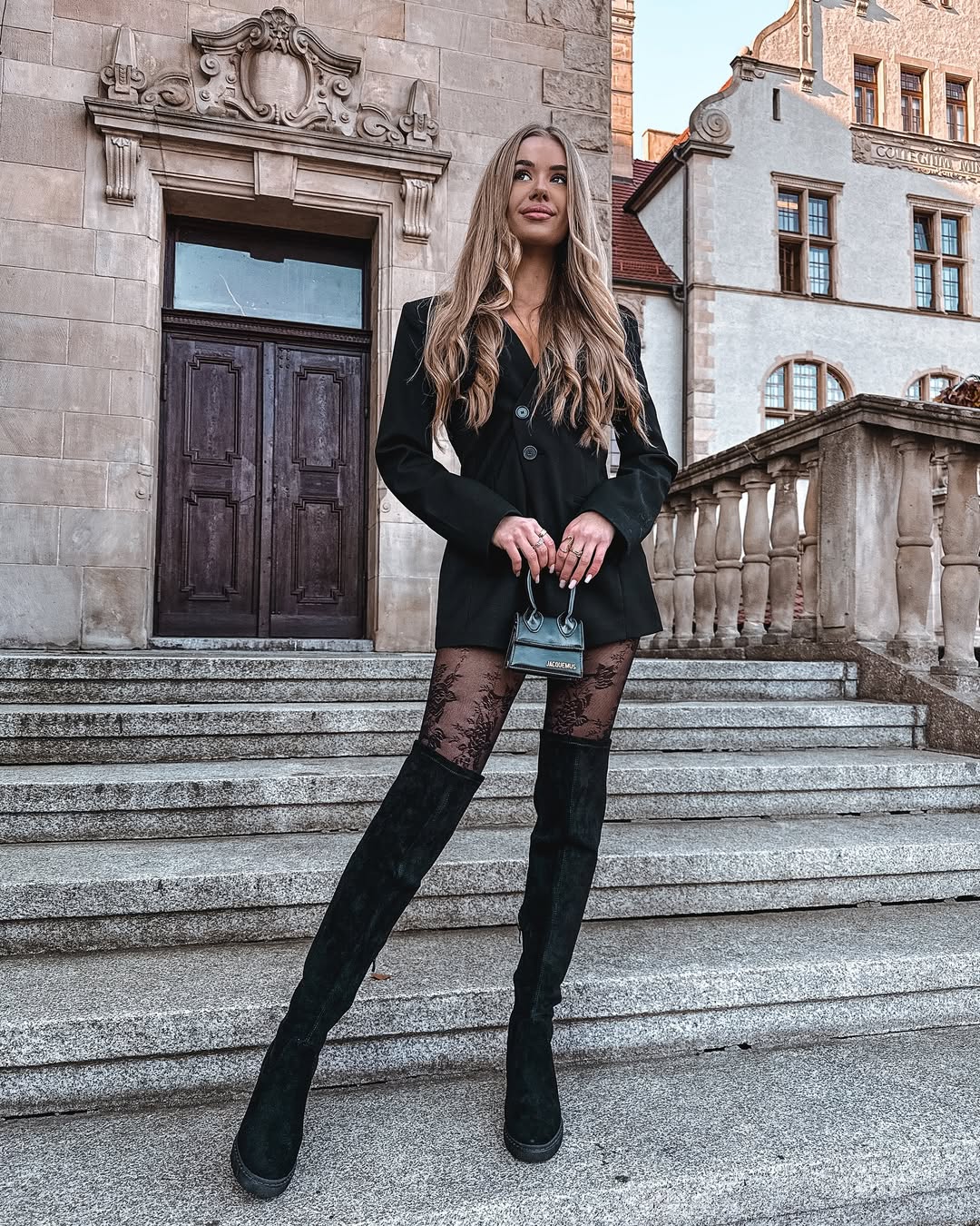 moteriški ilgaauliai batai Įsispiriamo modelio su plonais kulniukais Su Siuvimu juodos...