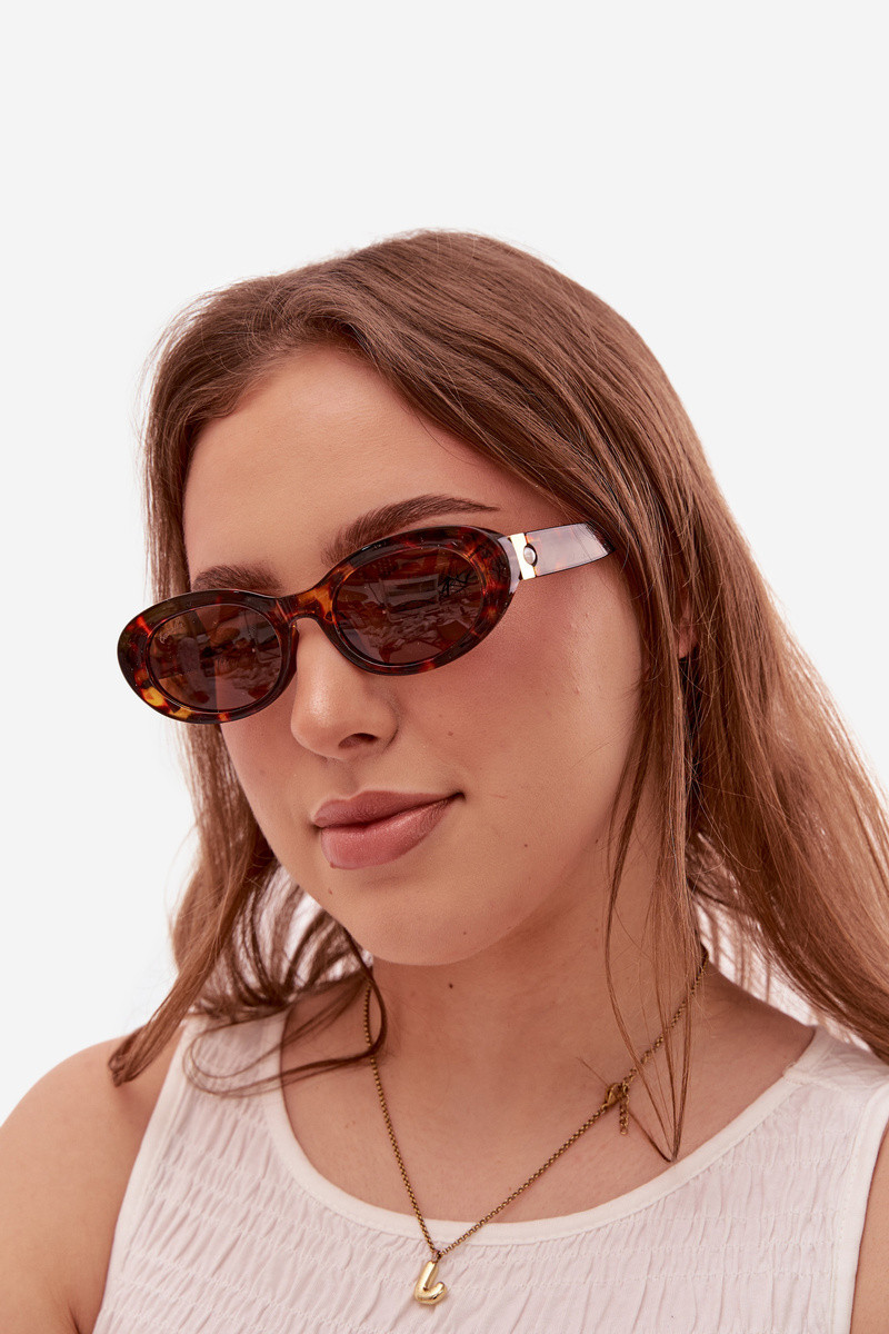 Moteriški saulės akiniai su dirbtiniais perlais rudos spalvos