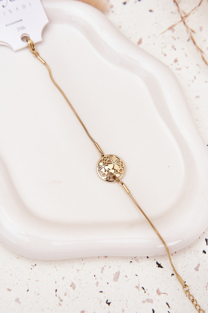 Moteriška apyrankė su žiedo pakabuku ir gėlių motyvais aukso spalvos
