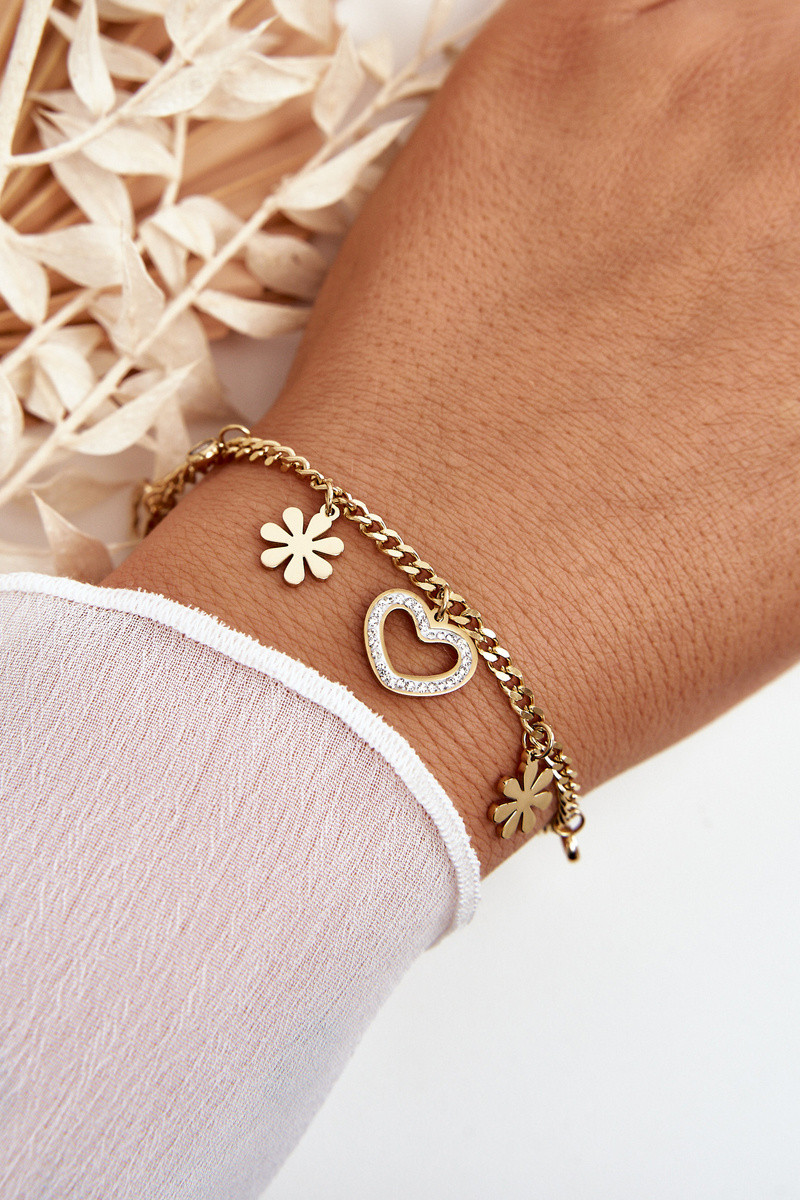 Tai turidingi Apyrankė Su gėlėmis ir širdimi aukso spalvos