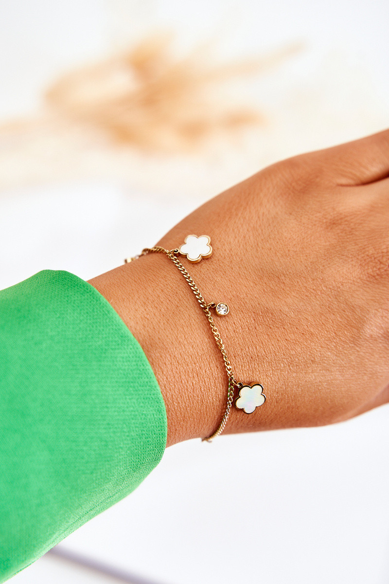 Apyrankė su grandinėle su gėlėmis aukso-balta