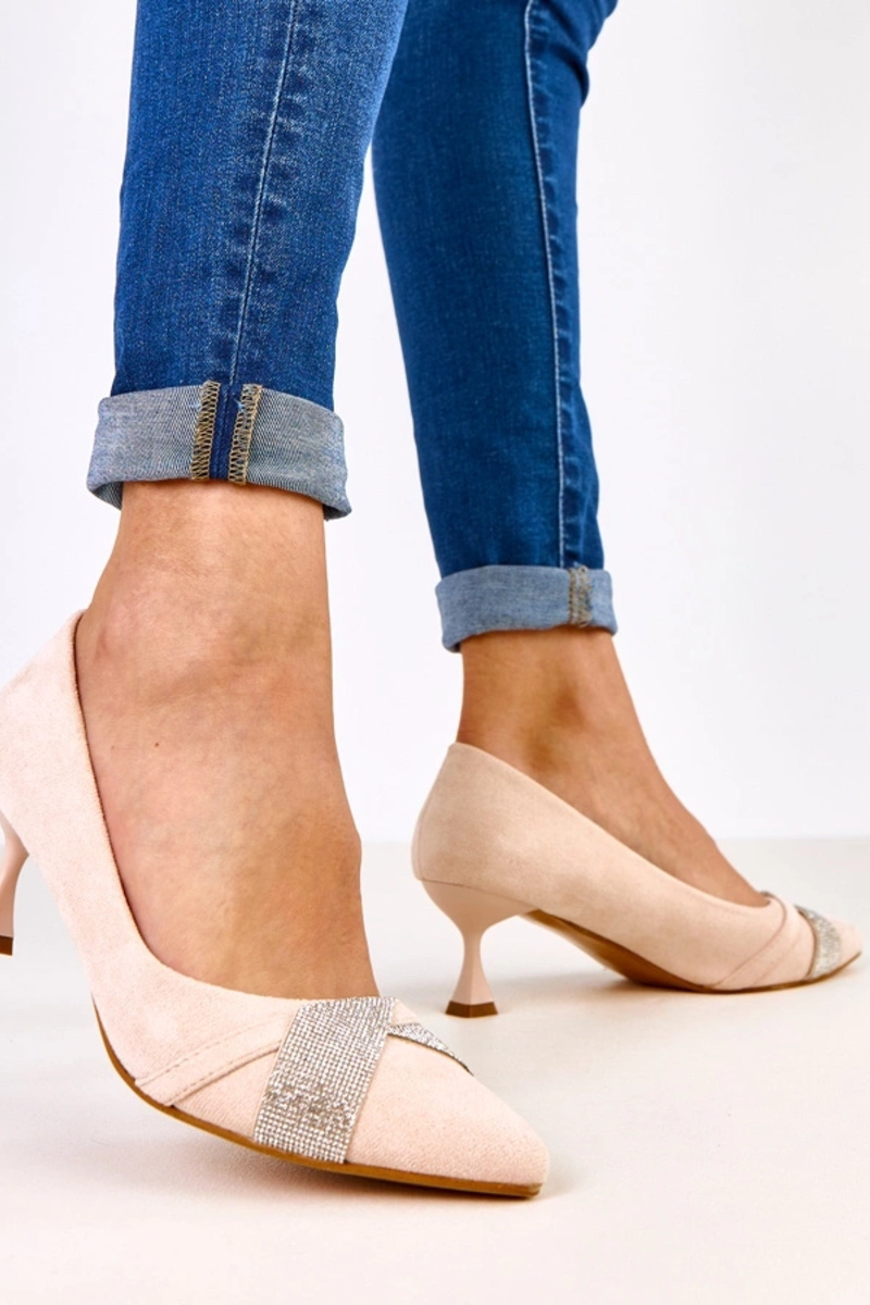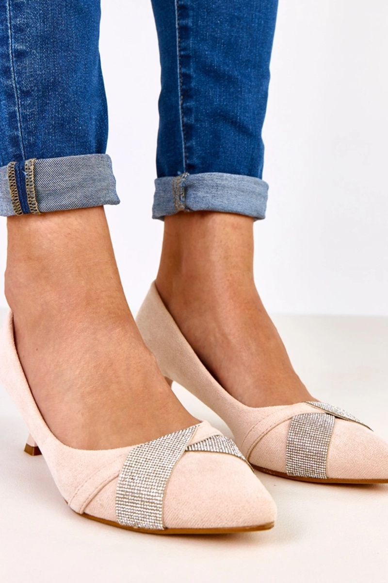 Smėlio spalvos aukštakulniai bateliai su žemu kulnu ir cirkoniais, Tajlana