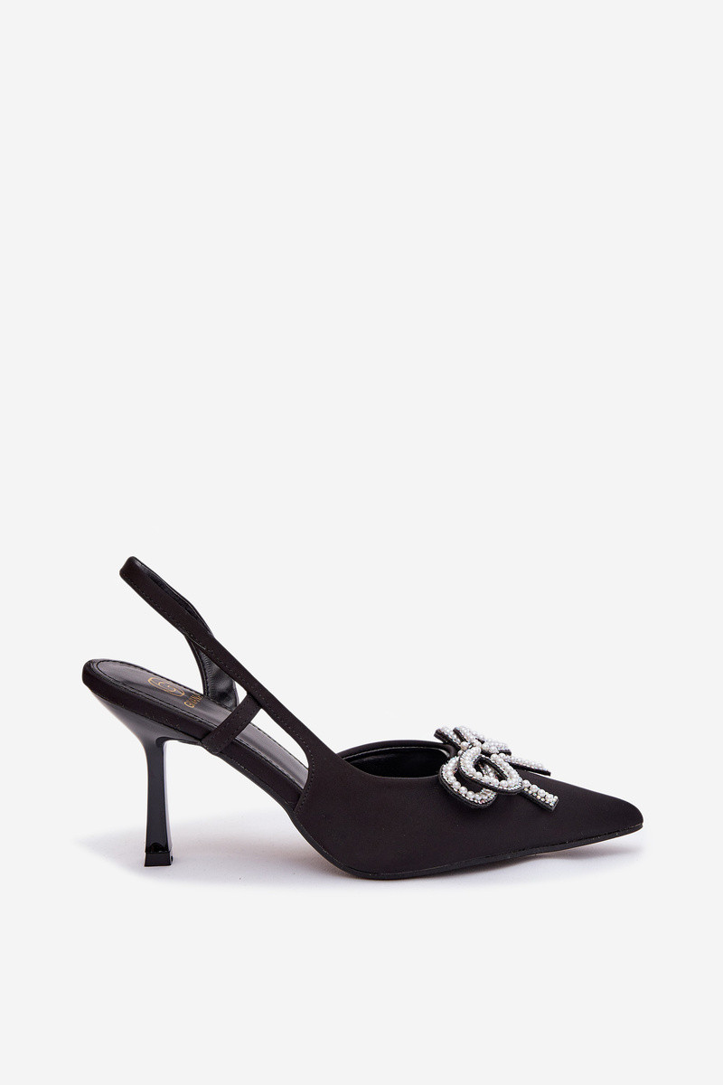 Juodos spalvos aukštakulniai bateliai su kaspinais ir atviru kulnu Derissa