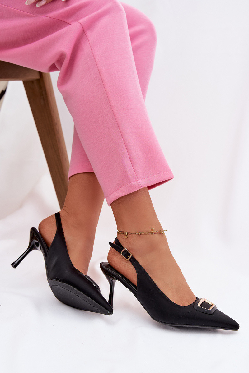 Moteriškos aukštakulnės basutės dekoruotos juodos spalvos Palerine