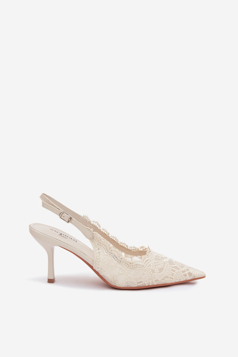 Nėriniuotos basutės su plonais kulniukais dramblio kaulo spalvos Carielle