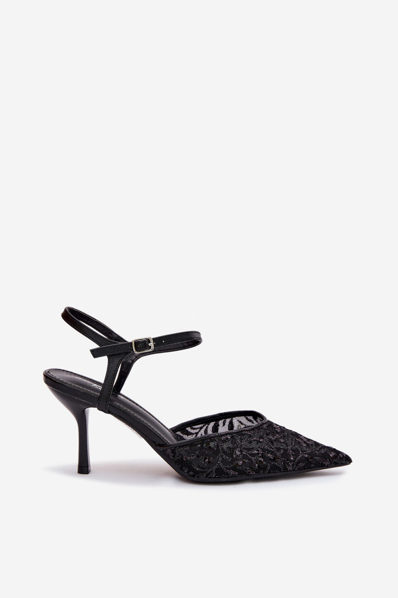 Tinklelis Moteriškos basutės su plonais kulniukaissusu blizgesiuującym Zdobieniem juodos spalvos Laria