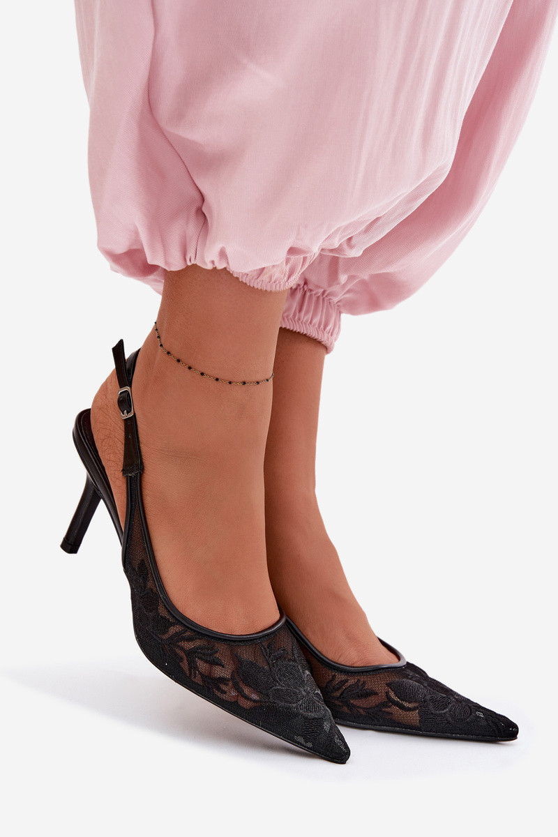 su nėrinių motyvais Tinklelis basutės su plonais kulniukais juodos spalvos Tai turivia
