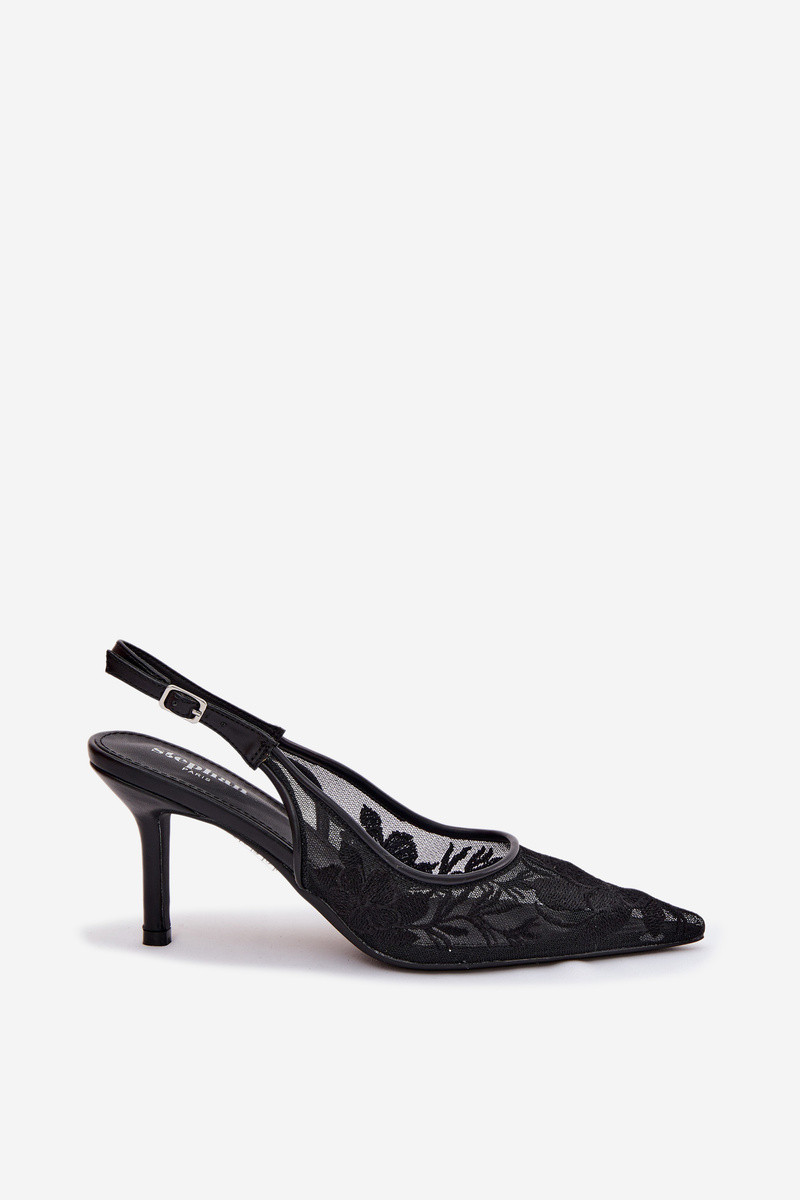 su nėrinių motyvais Tinklelis basutės su plonais kulniukais juodos spalvos Tai turivia