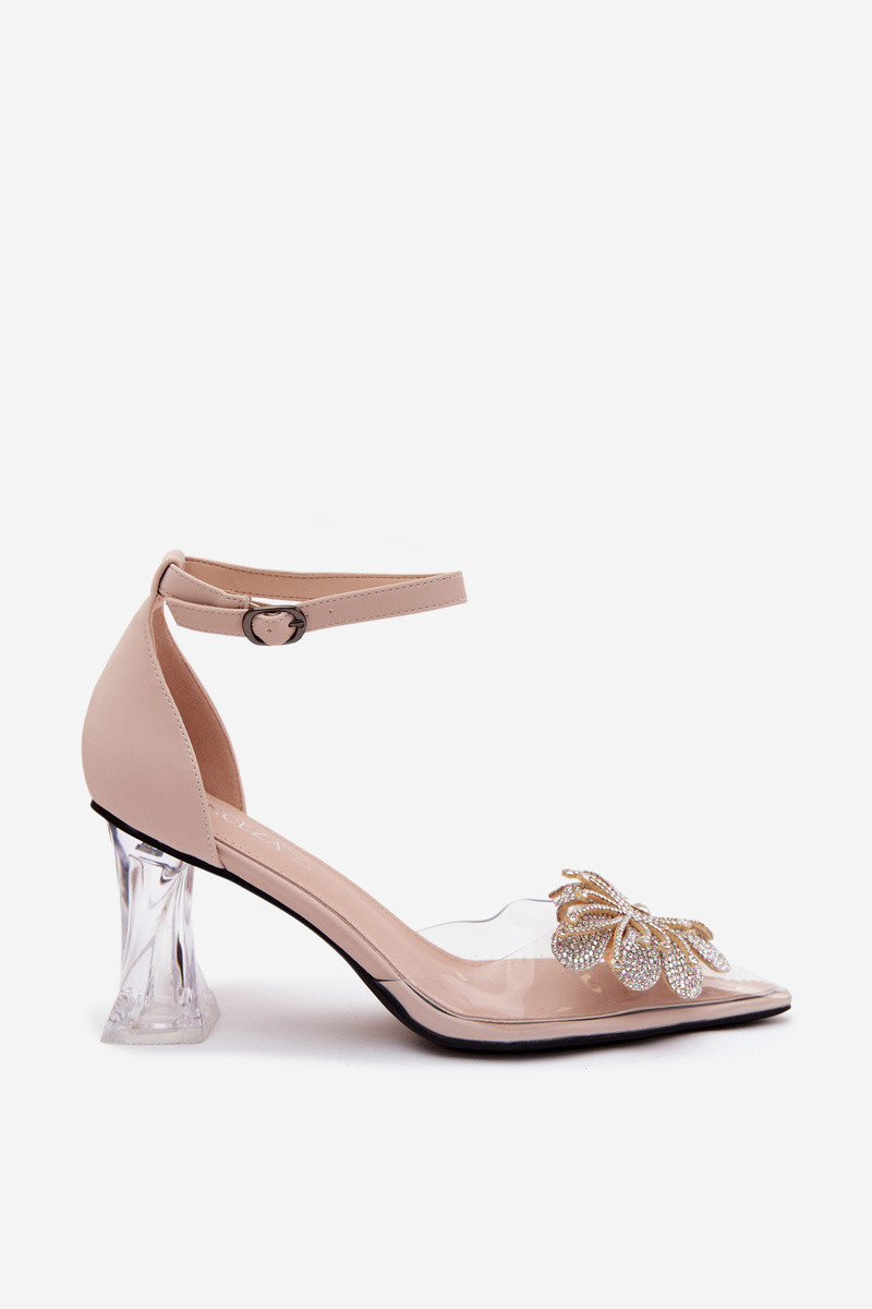 Smėlio spalvos bateliai su kulnu ir blizgia dekoracija Vinceza 62295
