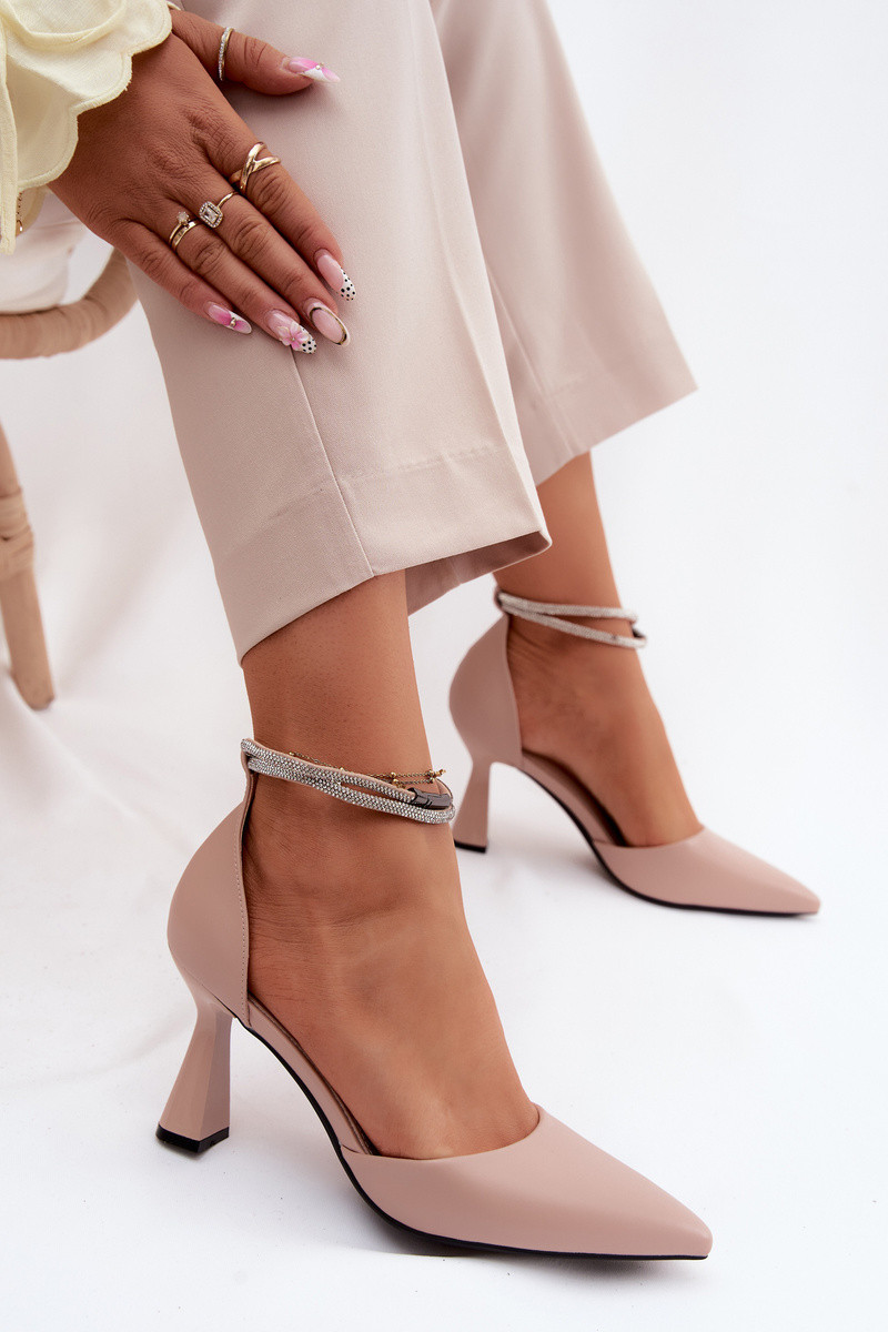 Smėlio spalvos bateliai su kulniuku ir blizgiomis juostelėmis Vinceza 62283
