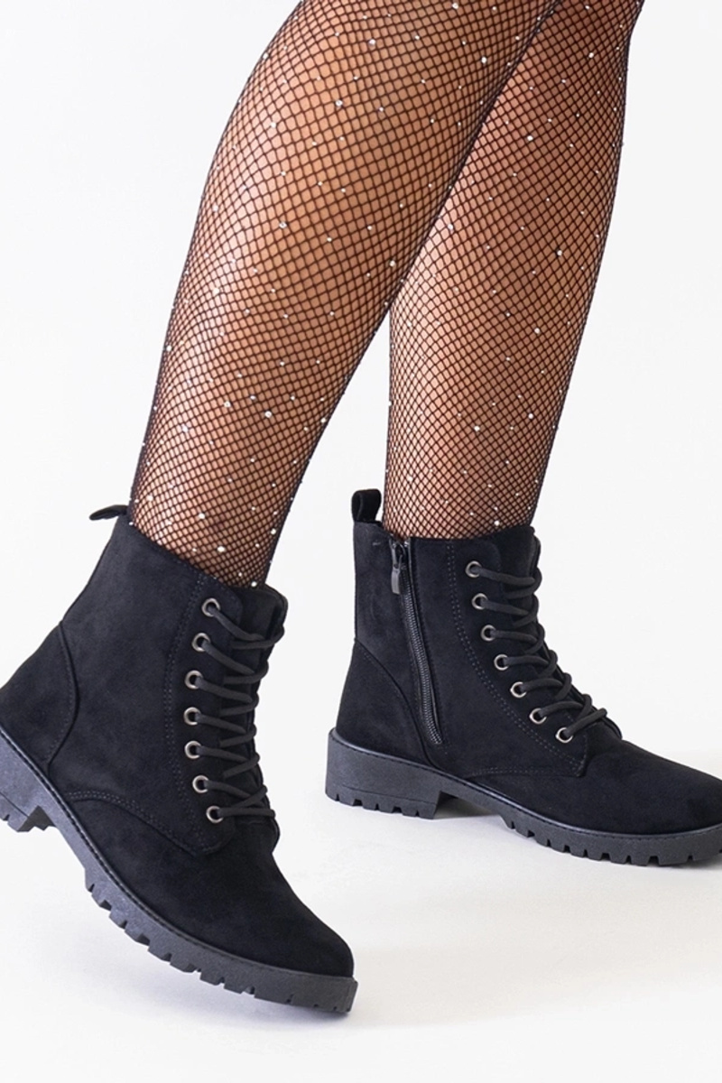 Juodi dirbtiniai zomšiniai darbiniai batai ant Barosa platformos