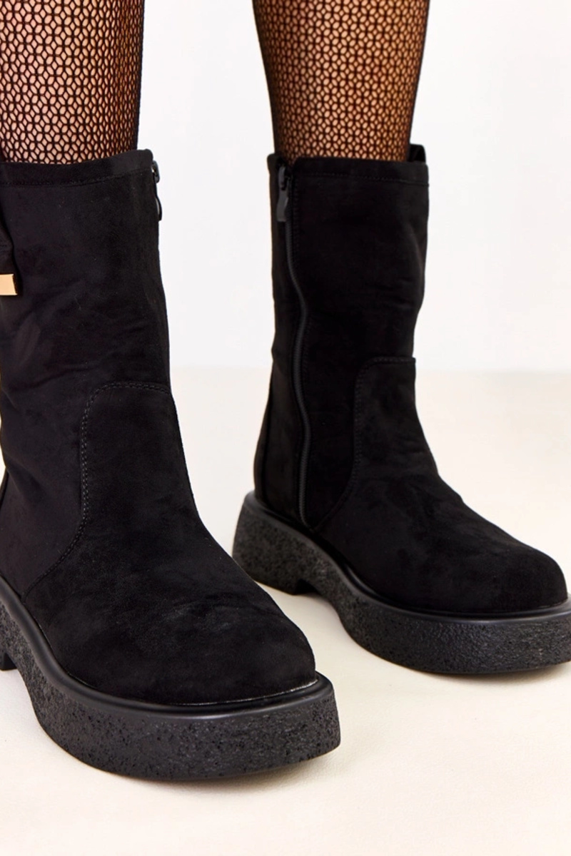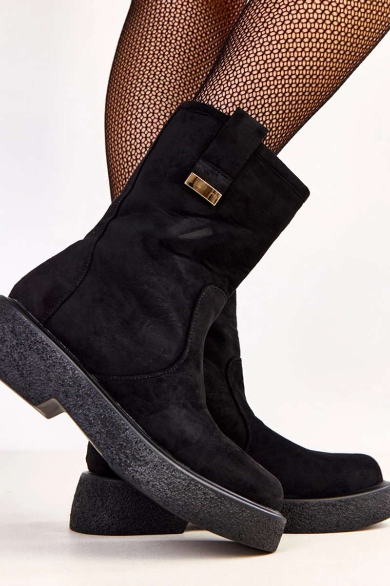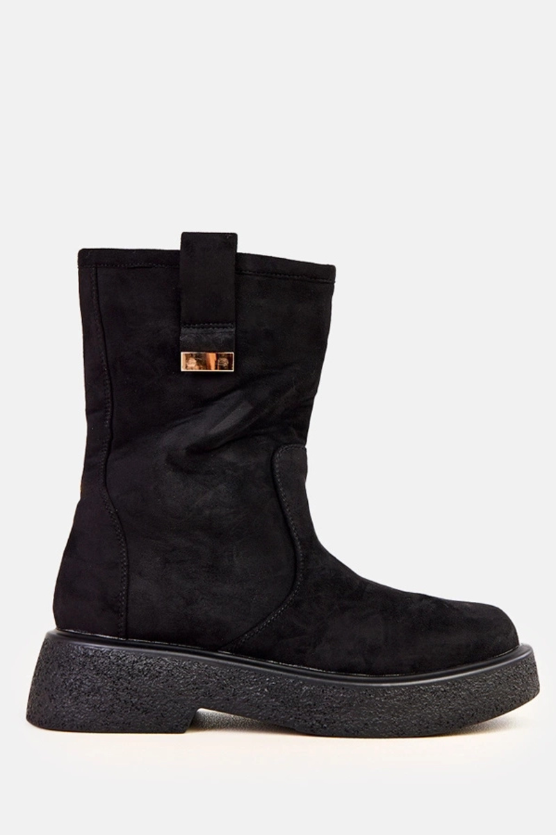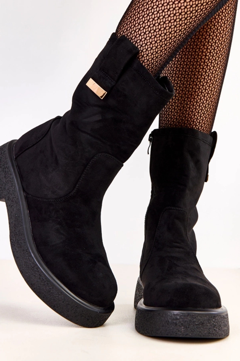 Juodi aulinukai iš dirbtinio zomšo su auksiniu papuošimu Mileda