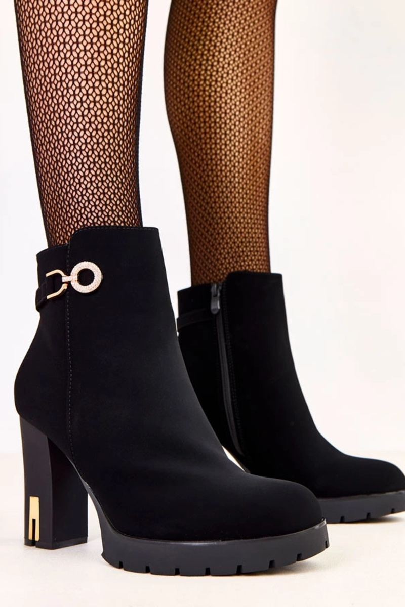Juodi elegantiški aulinukai ant stulpelio formos kulno su puošmena Verona
