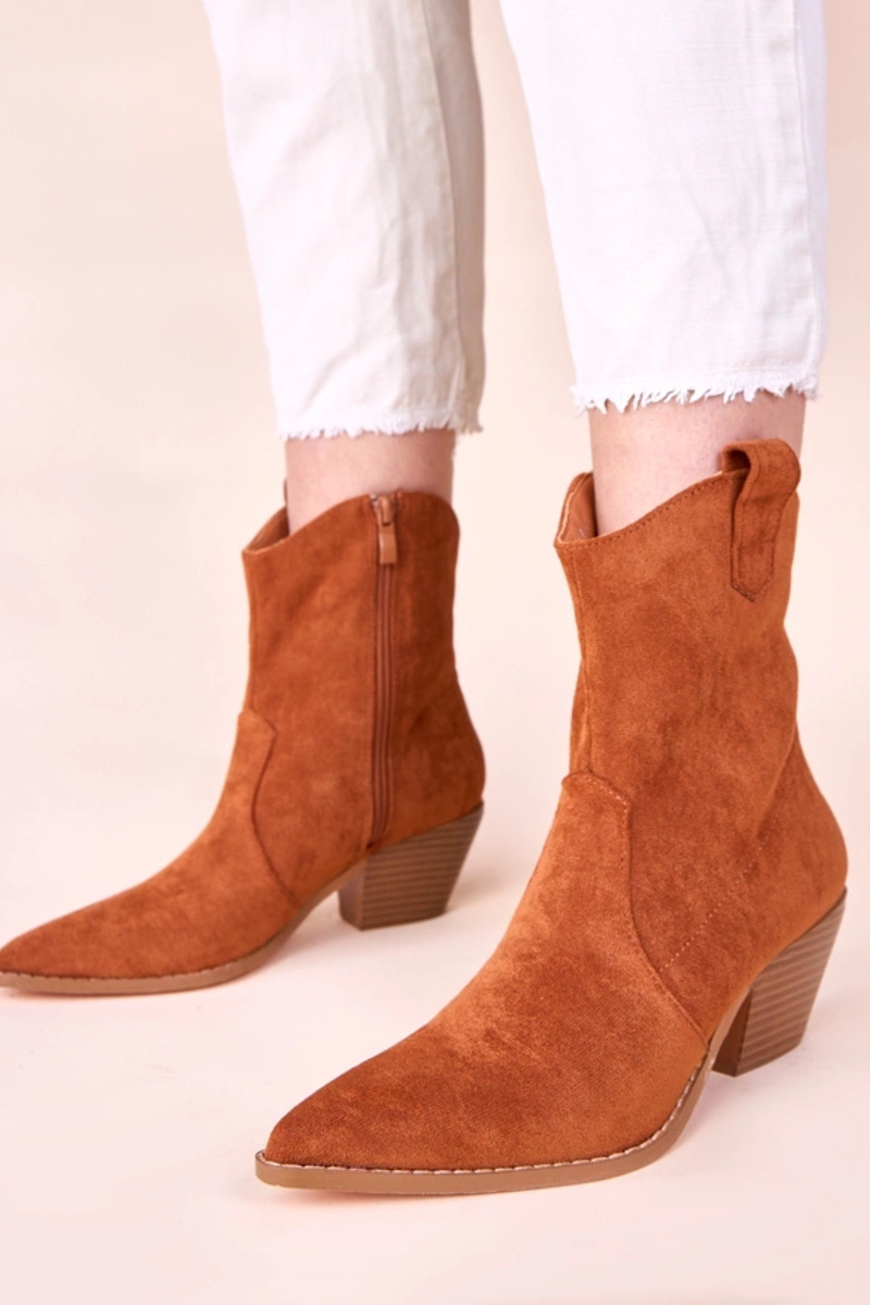 Rudos kaubojiškos aulinukės ant stulpelio Alka