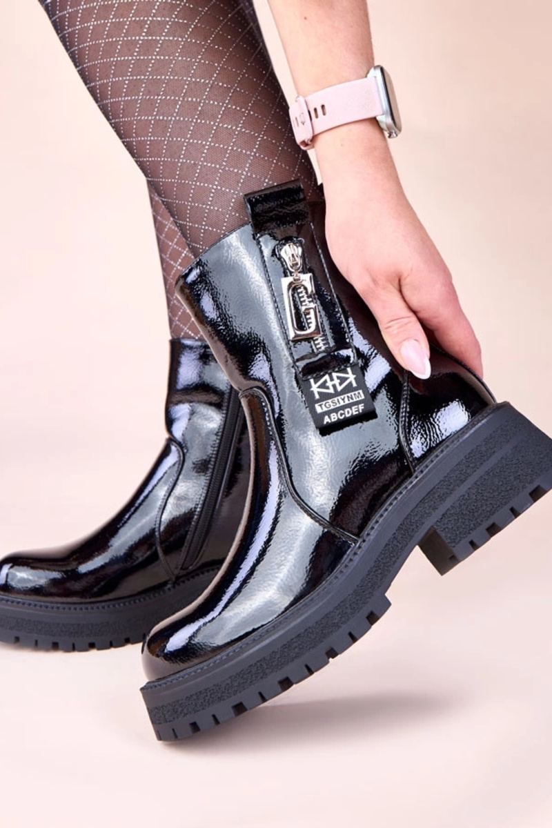 Juodi lakuoti aulinukai su dekoratyviniu užtrauktuku Taraya