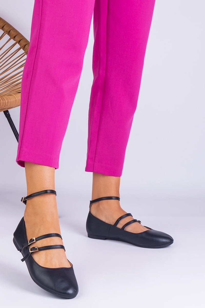 Juodos balerinos iš dirbtinės odos su sagtimis Vitoldora
