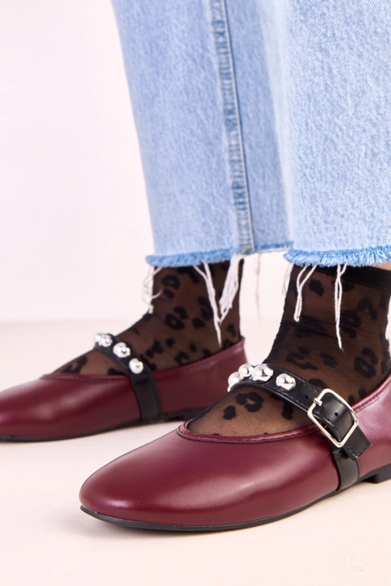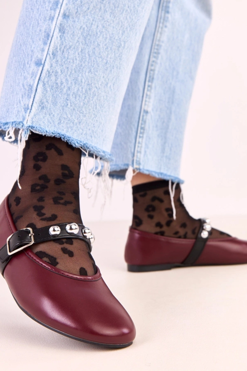 Tamsiai raudonos spalvos Faira balerinės su dekoruota sagtimi
