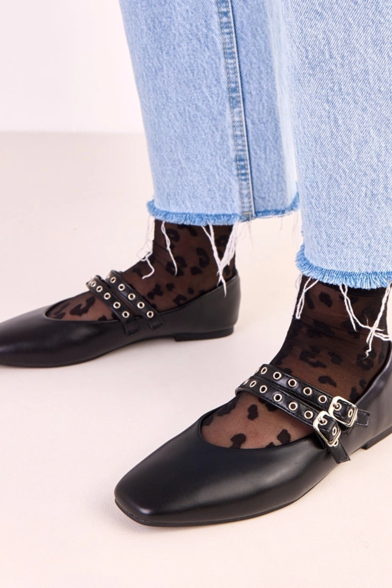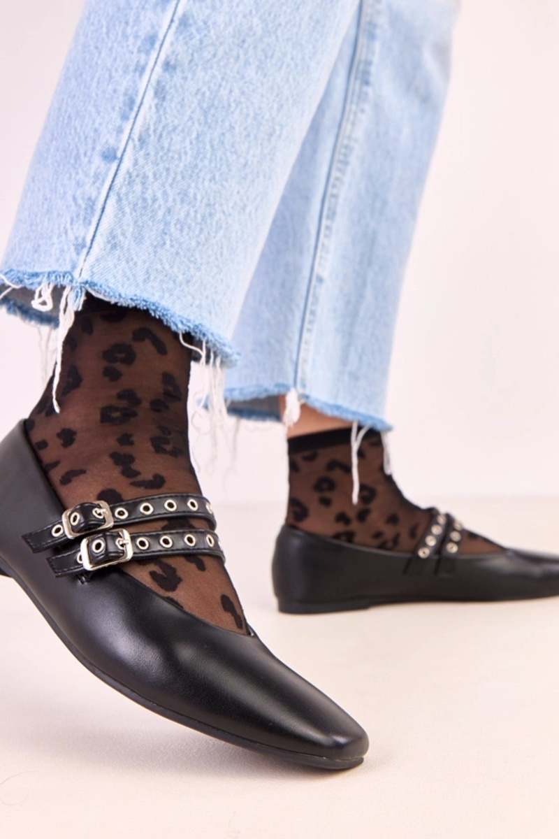 Juodos spalvos Alfira balerinės su kvadratiniu priekiu ir sagtimis