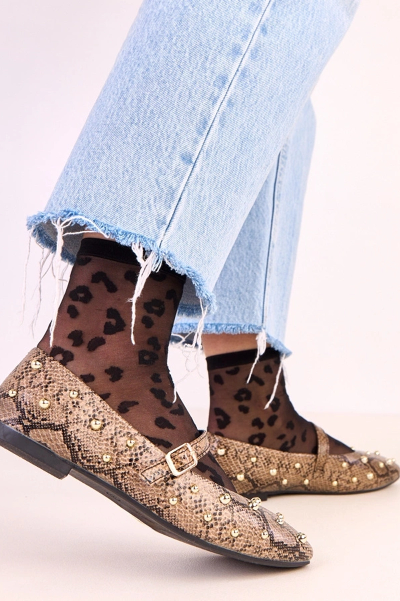 Rudos spalvos Selena balerinės su gyvatės odos motyvu, dekoruotos perliukais