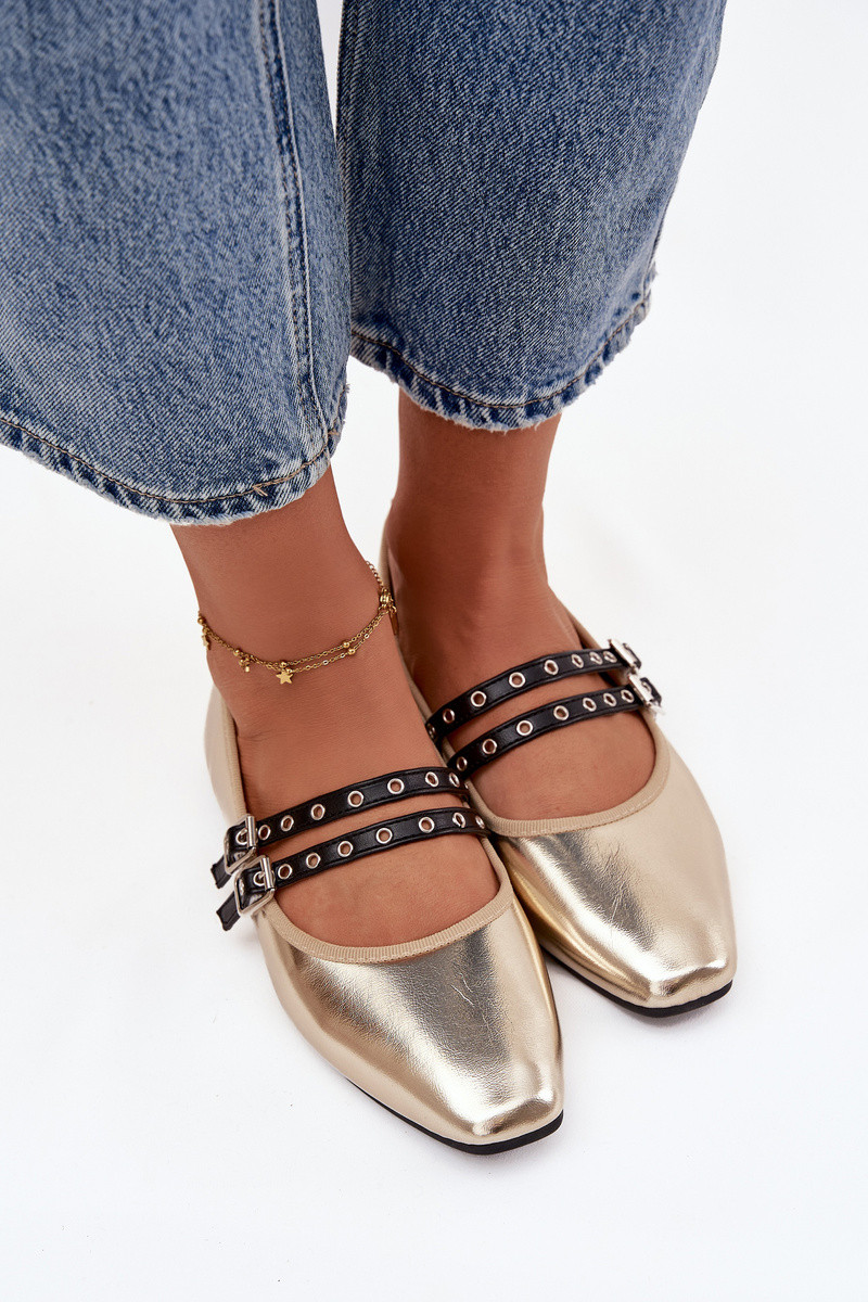 Moteriškos balerinės su juostelėmis aukso spalvos Deliora