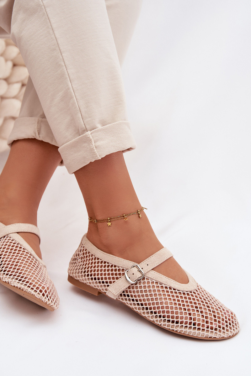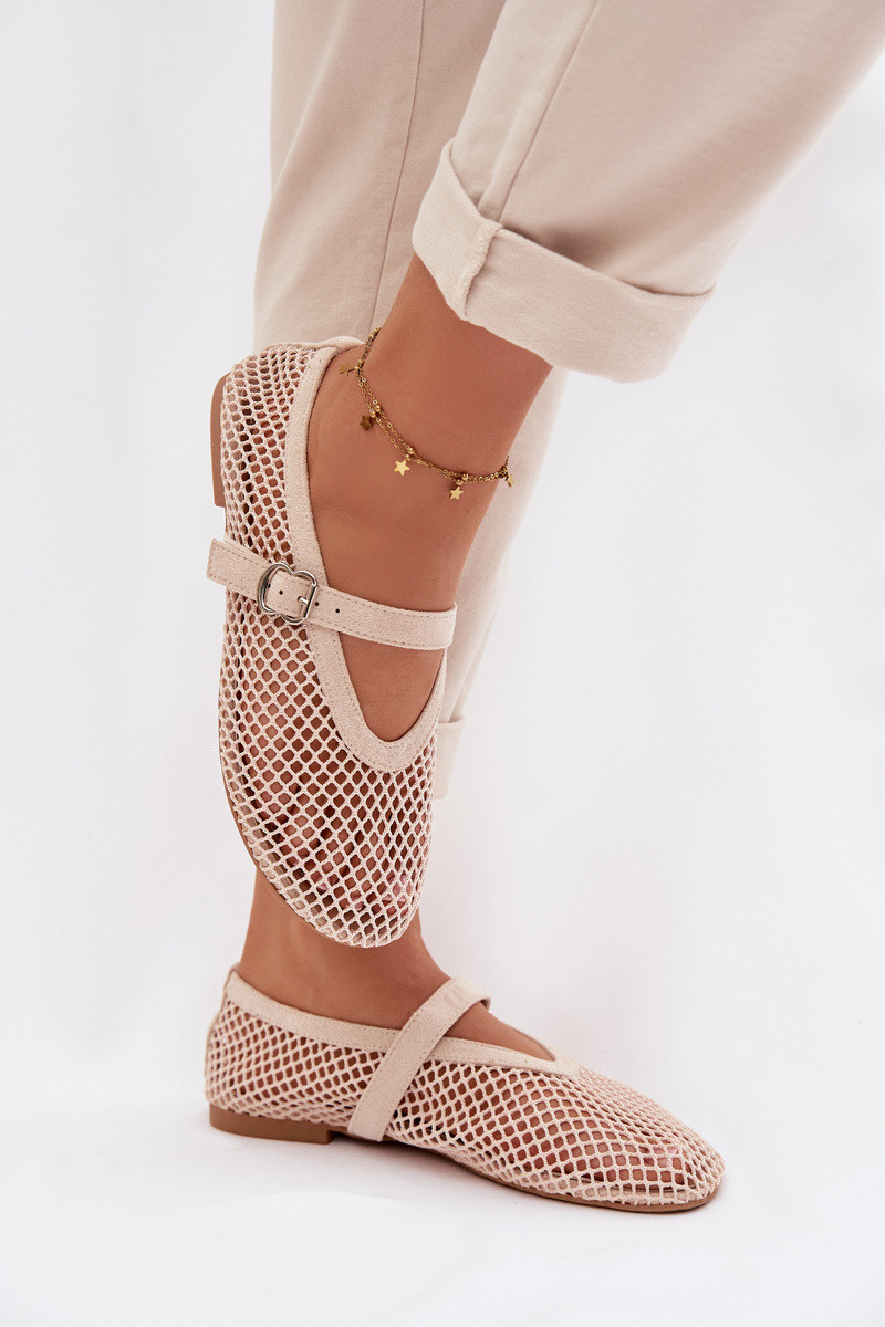 Tinklinės balerinukės su dirželiais dramblio kaulo spalvos Pherina