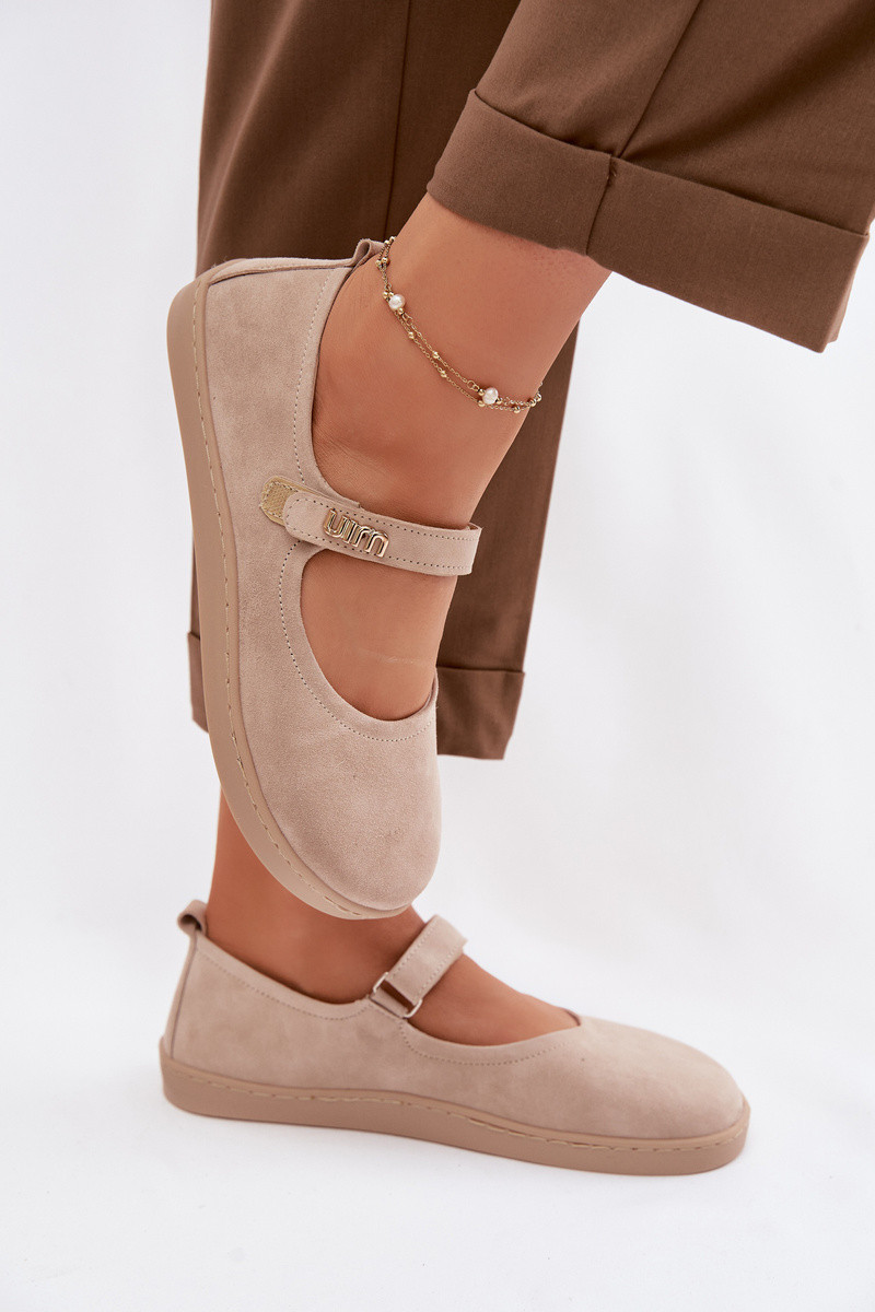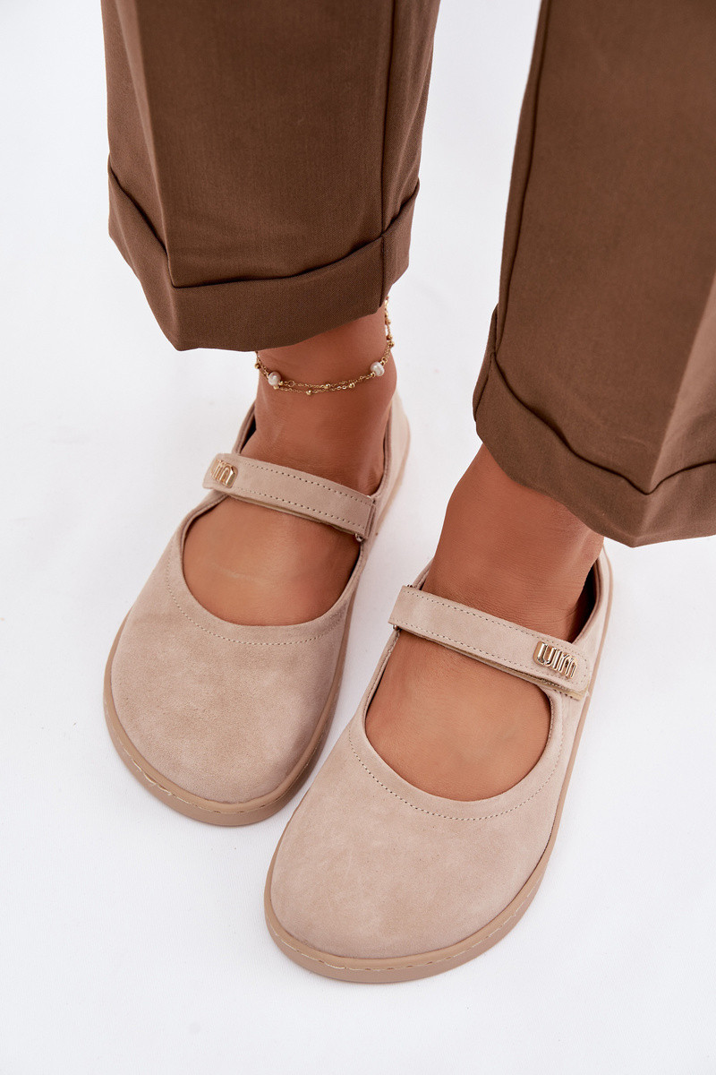 Odinės zomšinės balerinos Barefoot su dirželiais Zazoo 10206 šokolado spalvos