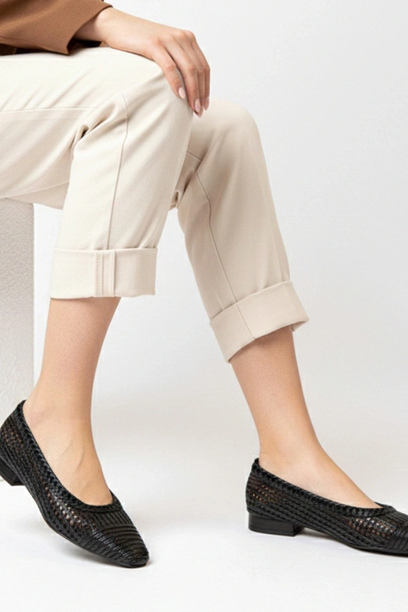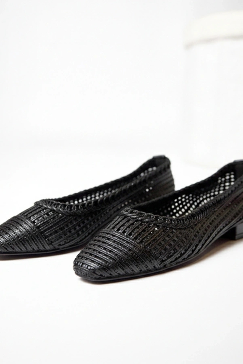 Juodos ažūrinės balerinukės mažu kulnu Simone