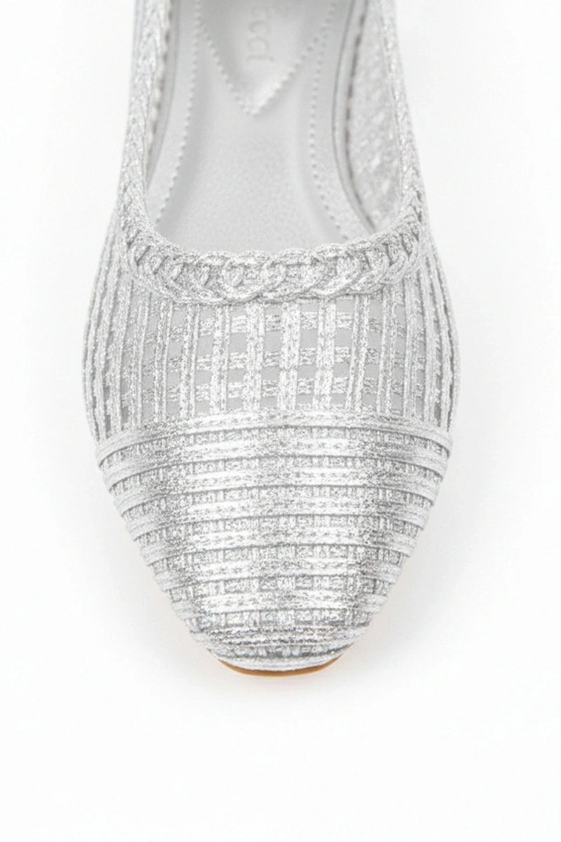 Sidabrinės ažūrinės balerinukės mažu kulnu Simone
