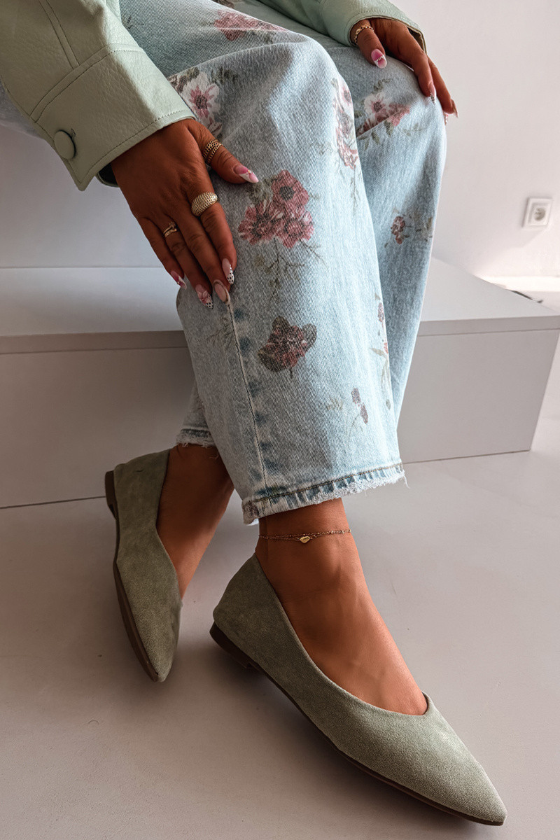 Balerinos lygiapadžiaisuiš eko zomšosu žalios spalvos Lelisa