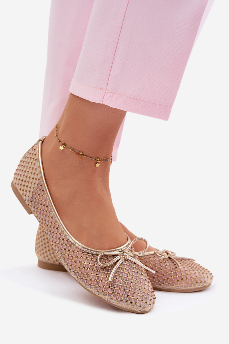 Tinklelių balerinės su dekoracija Vinceza 62270 aukso spalvos
