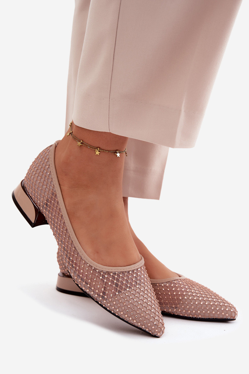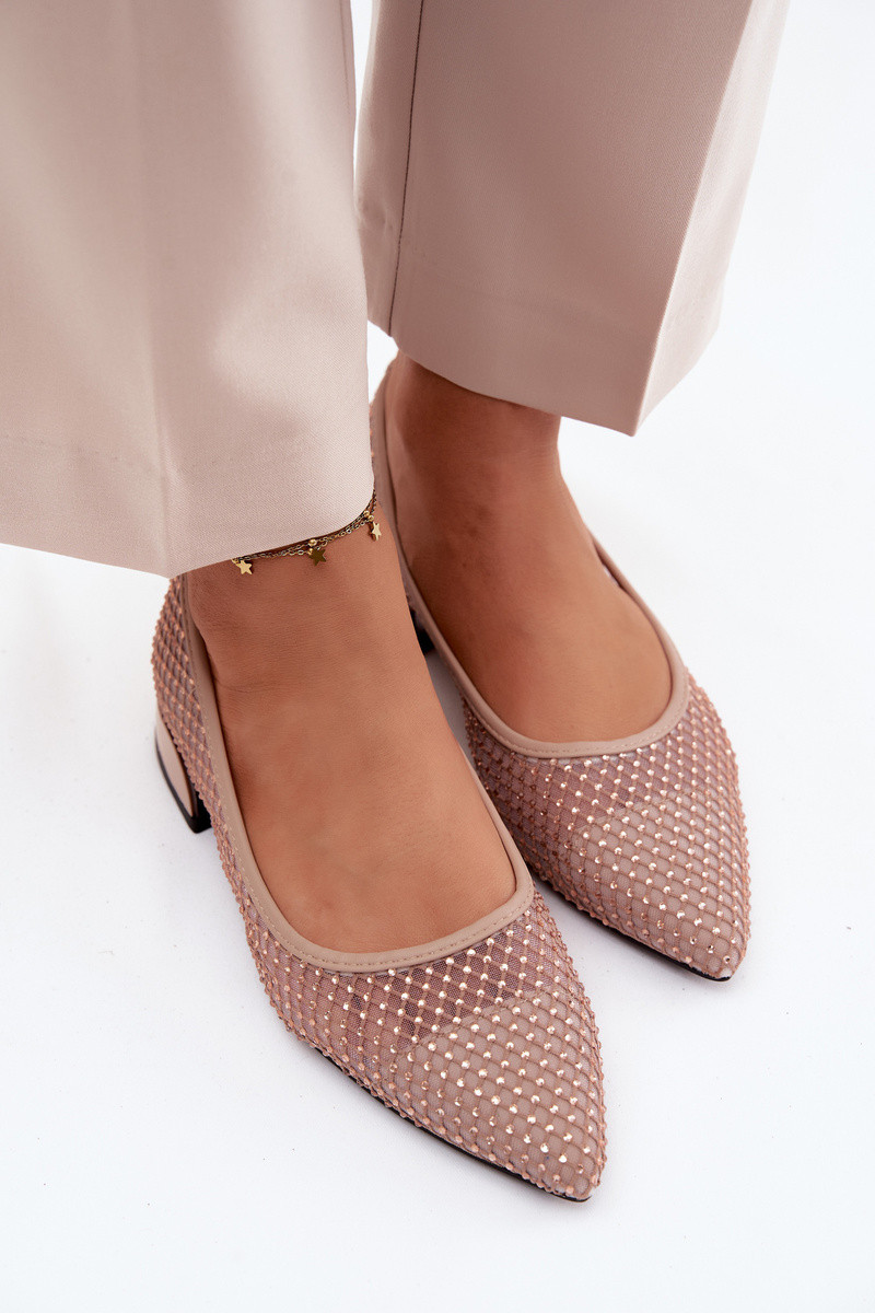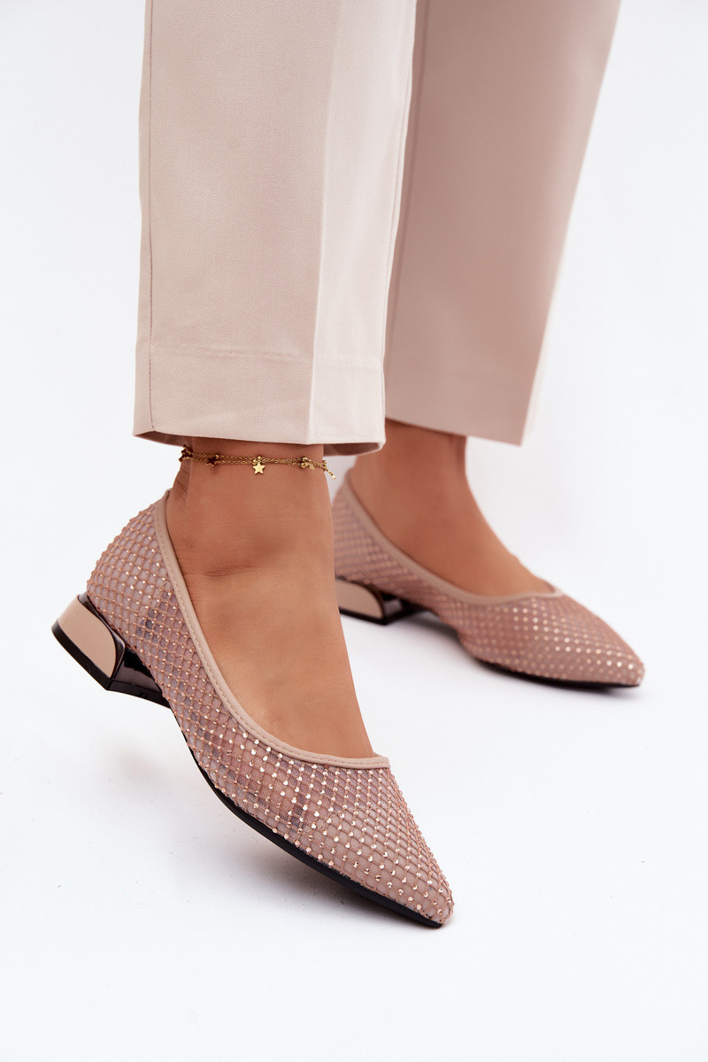 Smėlio spalvos balerinos ant žemo kulno su tinkline dekoracija Vinceza 62294