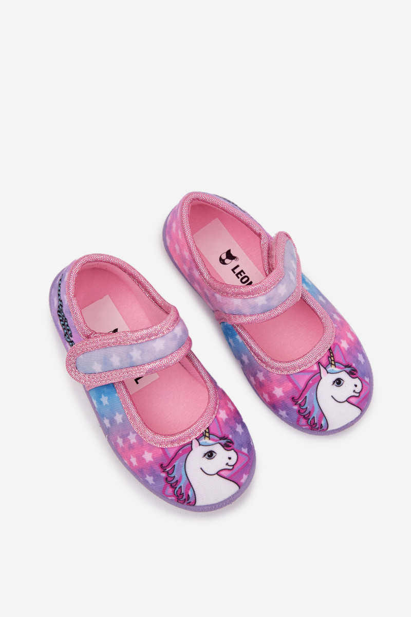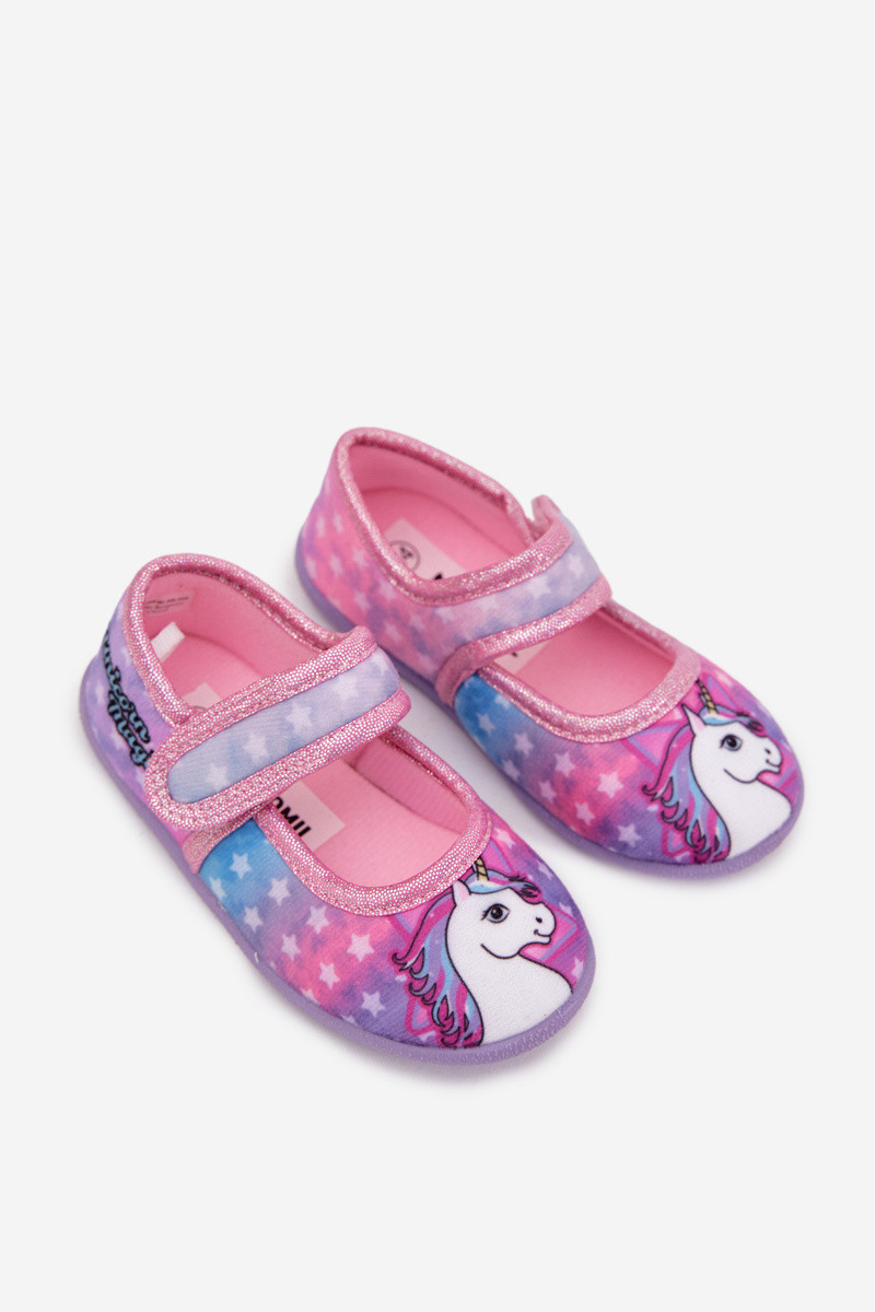 Mergaitiškos UNICORN Silviera rožinės spalvos šlepetės-baletkos su lipniais užsegimais