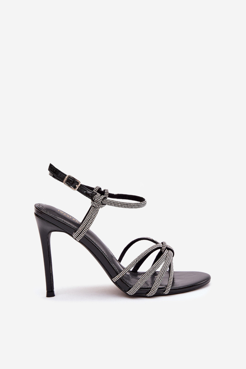 Moteriškos basutės su plonais kulniukais su juostelėmis Ir cirkoniai juodos spalvos Tanelle
