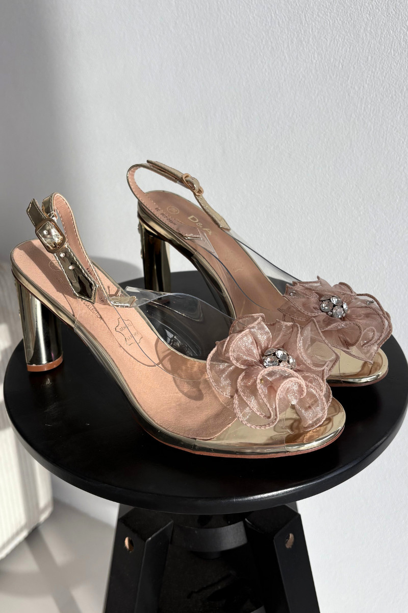 basutės su kulniukais su ornamentais I Kryształkami D&A MR52-236 aukso spalvos