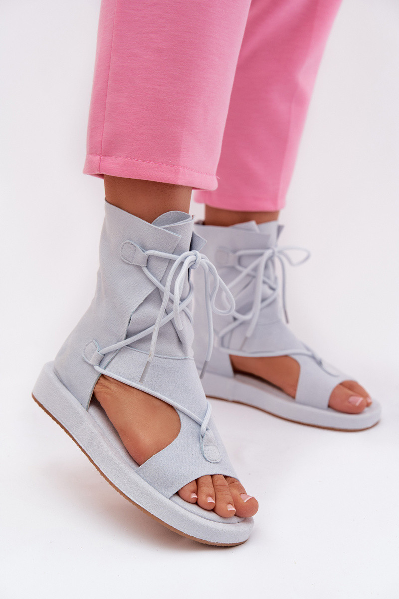 Moteriškos basutės iš dirbtinio zomšo su auliuku ir raišteliais šviesiai mėlynos spalvos Ferlisse