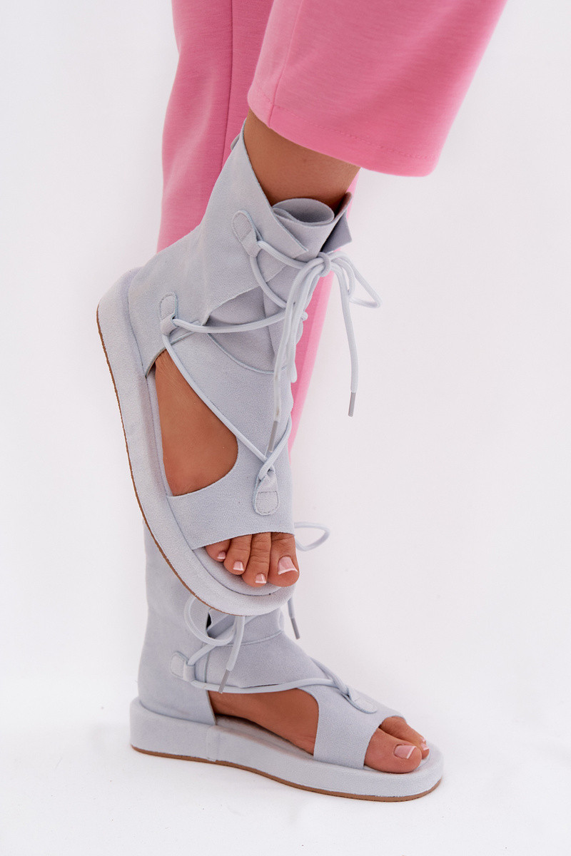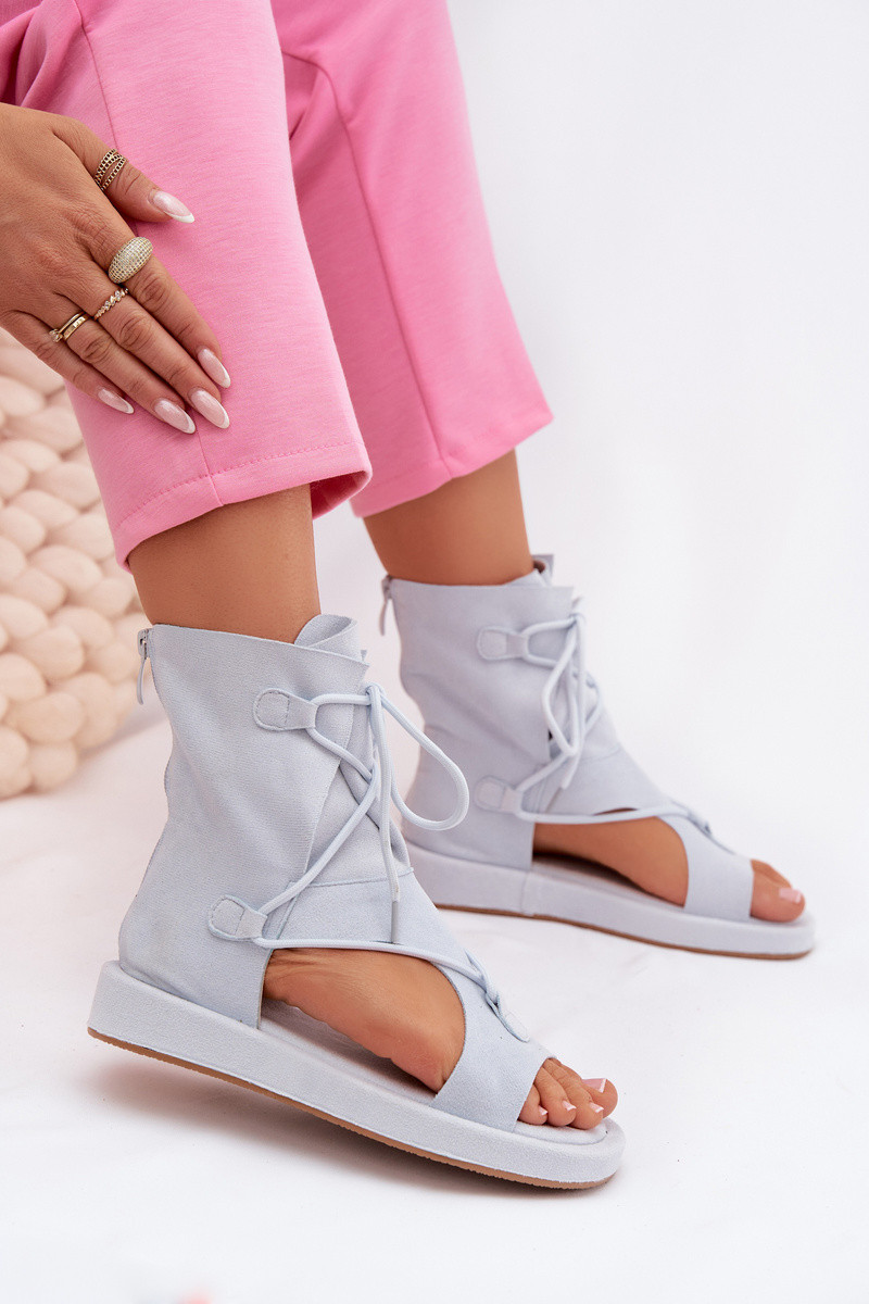 Moteriškos basutės iš eko zomšosoĮe su auliuku I INiązaniem šviesiai mėlynos spalvos Ferlisse
