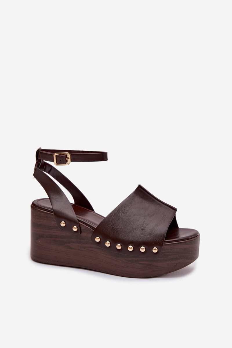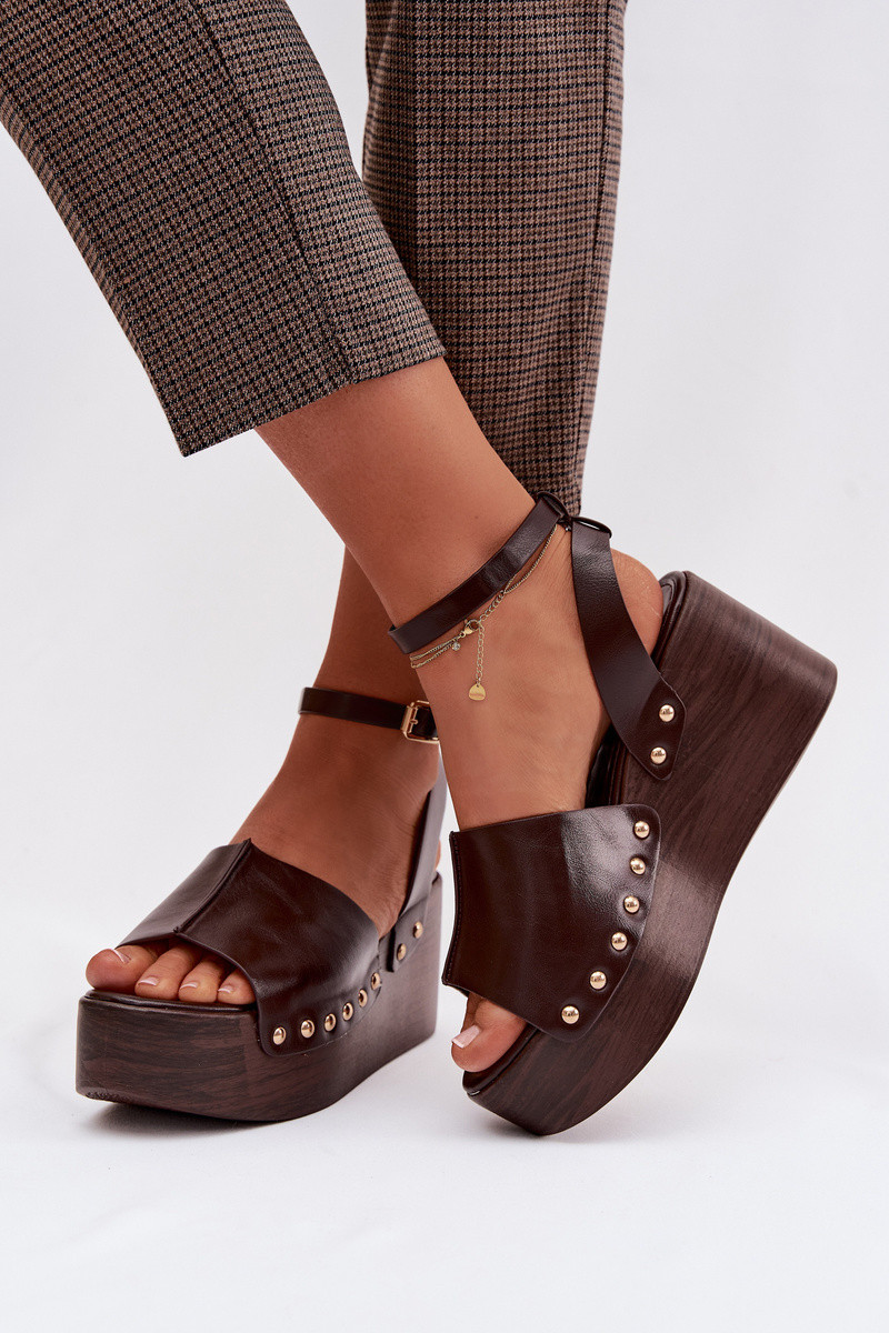 Moteriškos basutės ant platformos su auksinėmis smeigėmis šokoladinės spalvos Galorina