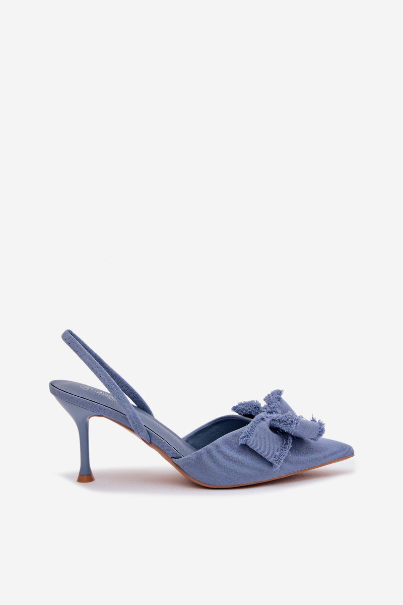 Moteriškos basutės su plonais kulniukais su kaspinais mėlynos spalvos Hestia