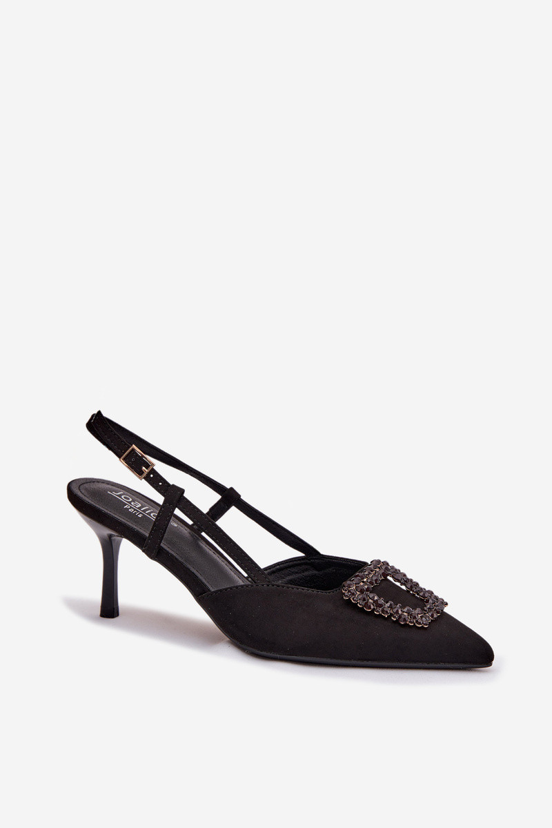 Moteriškos basutės su plonais kulniukais ir ornamentais, juodos, Ismeria