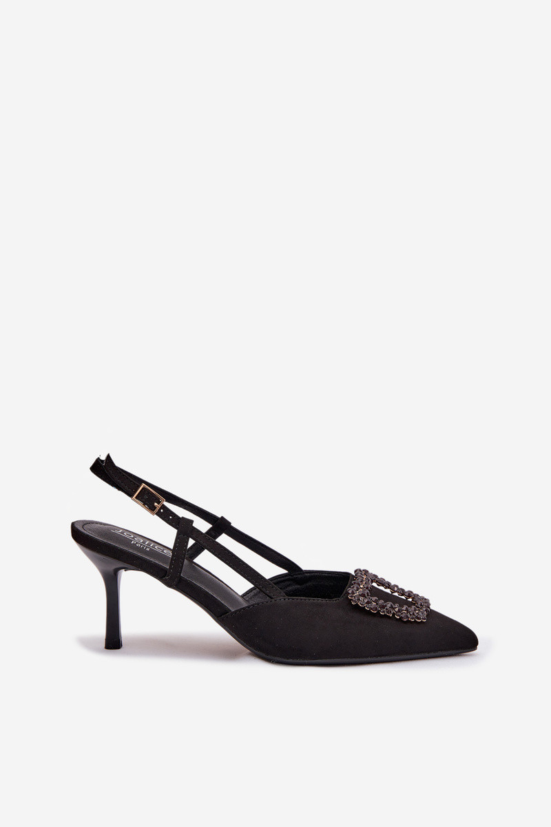Moteriškos basutės su plonais kulniukais su ornamentais juodos spalvos Ismeria