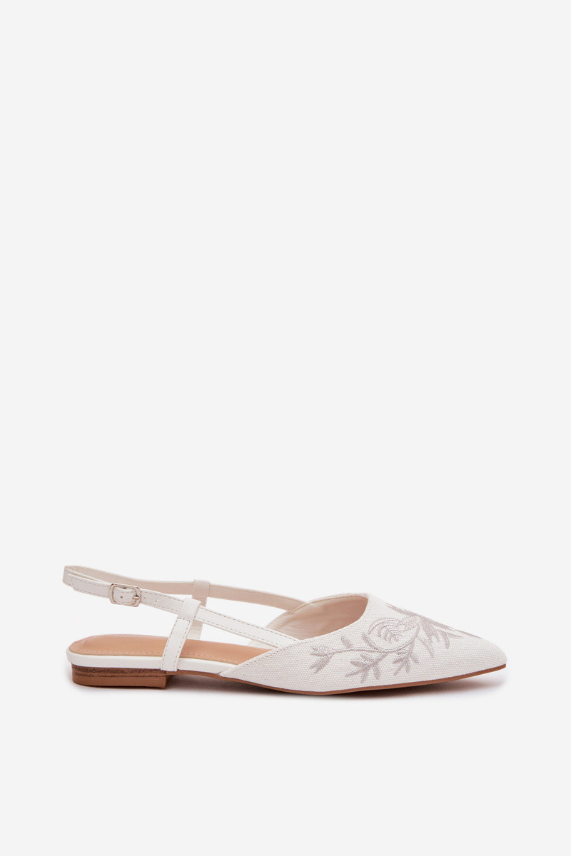 Moteriškos basutės su haftu lygiapadės baltos spalvos Grelia