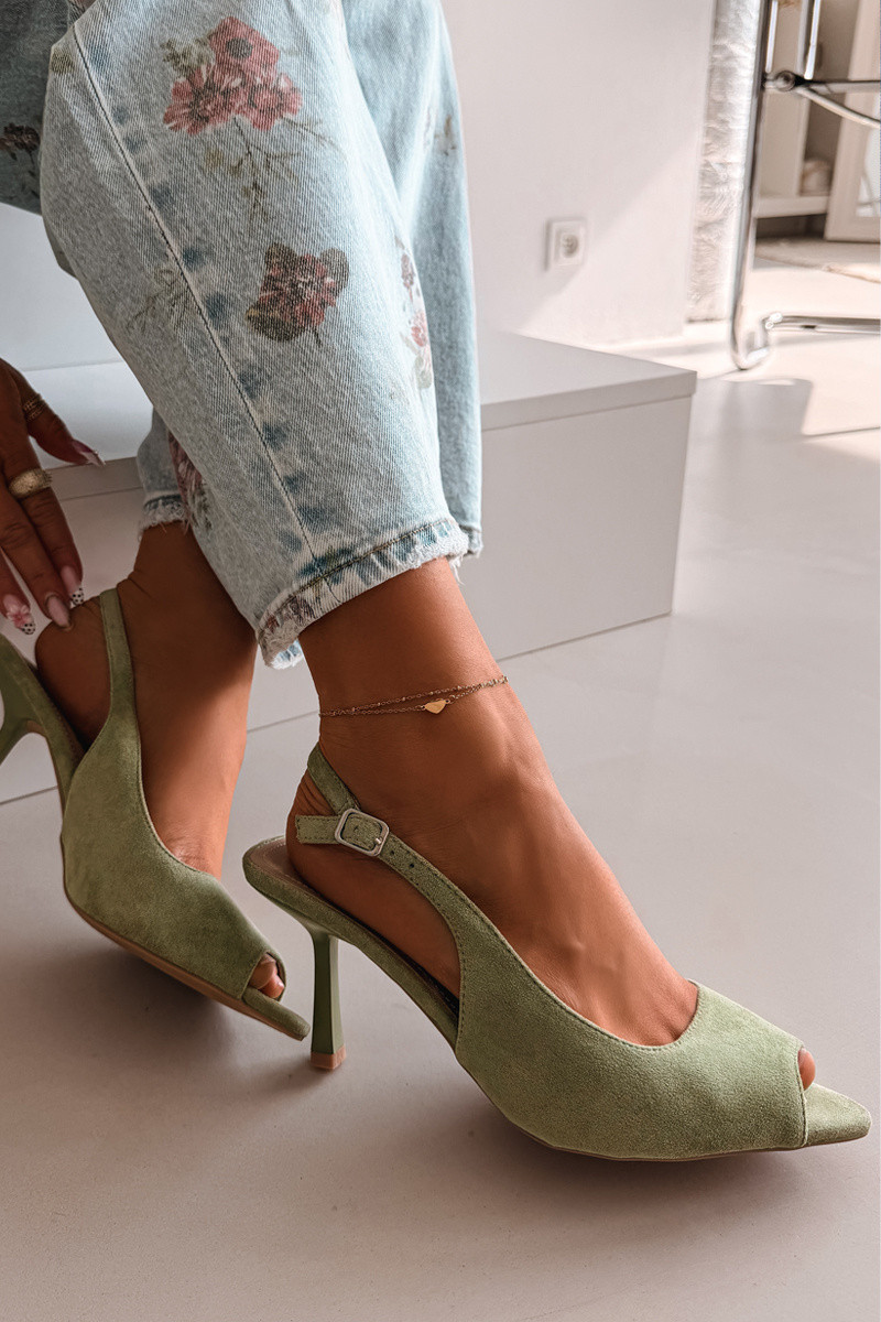Moteriškos basutės su plonais kulniukais iš dirbtinio zomšo smėlio spalvos Sevina