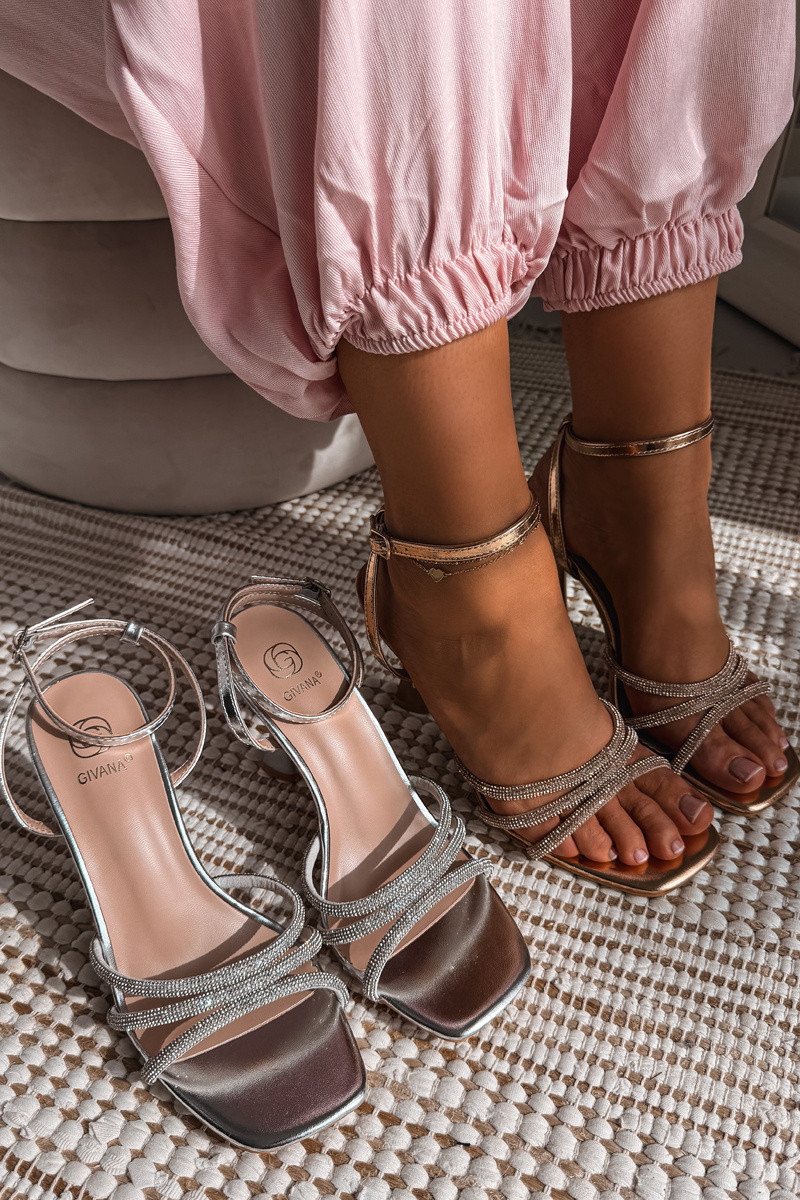 Moteriškos basutės su kulniukais dekoruotos dirželiais šampano spalvos Gedira