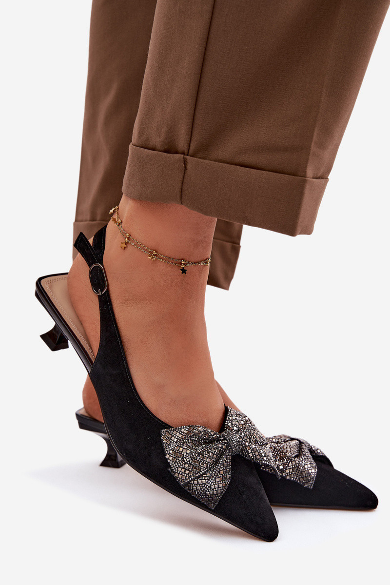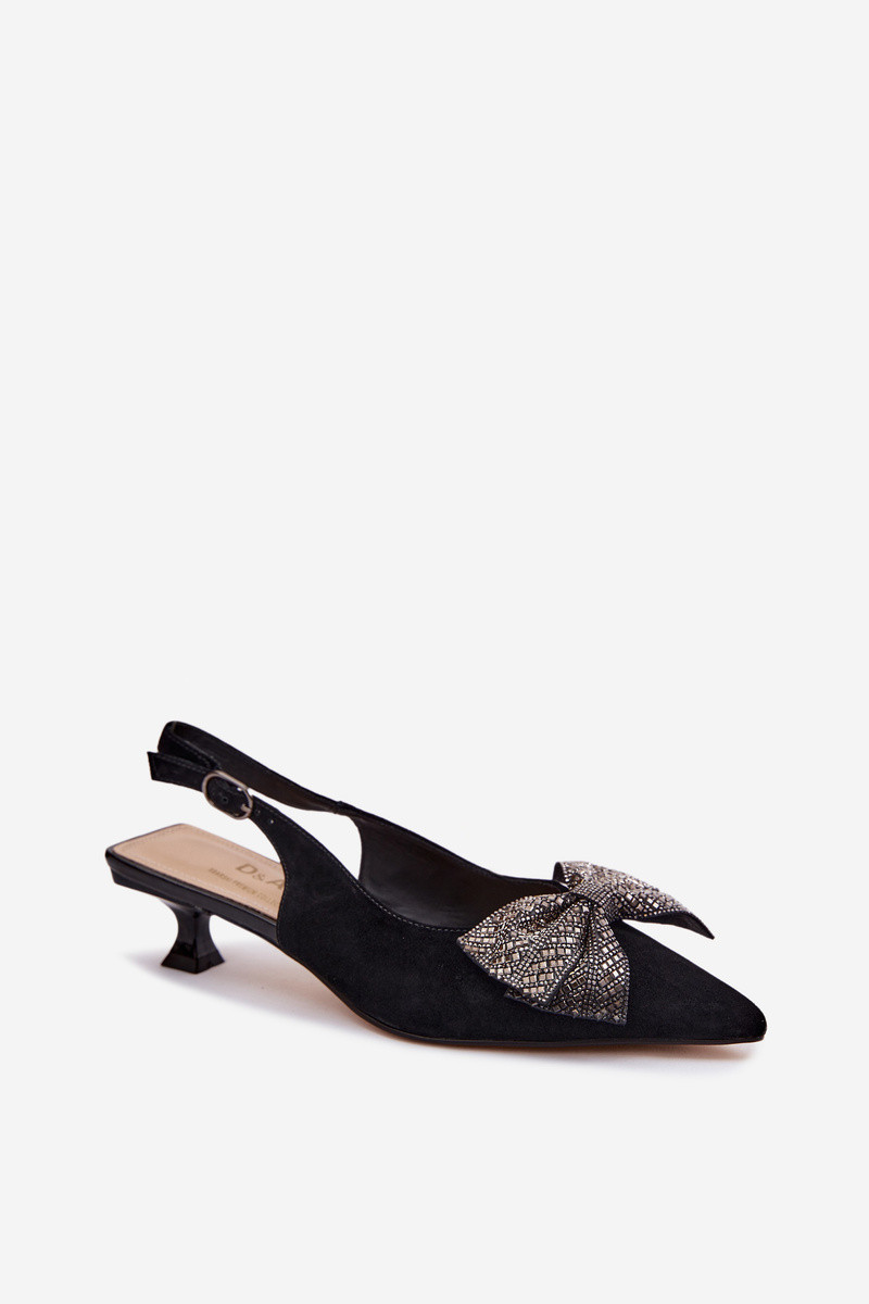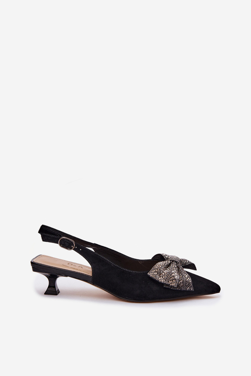 Oda Zomšinės basutės su kaspinais su kulniukais D&A CR61-3130 juodos spalvos
