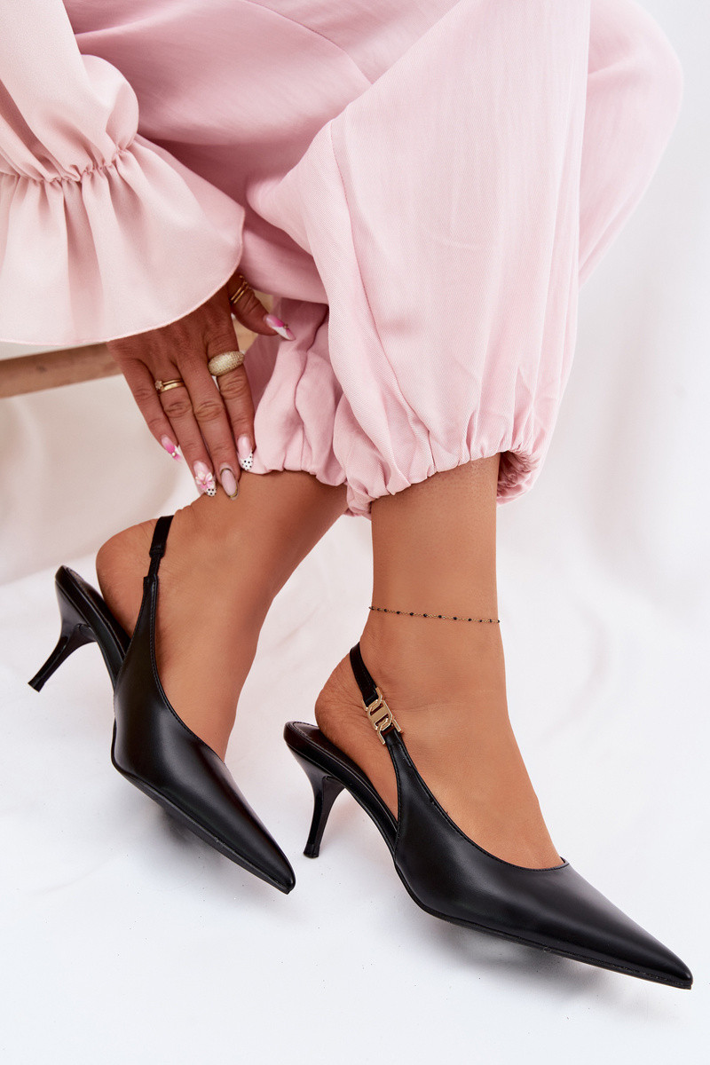 Moteriškos basutėssuImitacji Skóry su plonais kulniukais juodos spalvos Jelissey