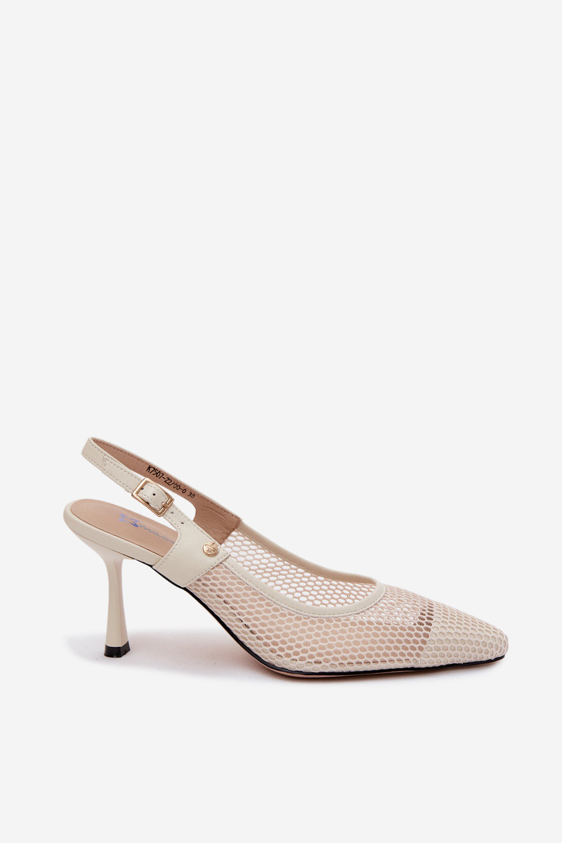 Oda Ažūrinės basutės Bateliai Moteriškas su plonais kulniukais Tai turiciejka K7507-22 dramblio kaulo spalvos