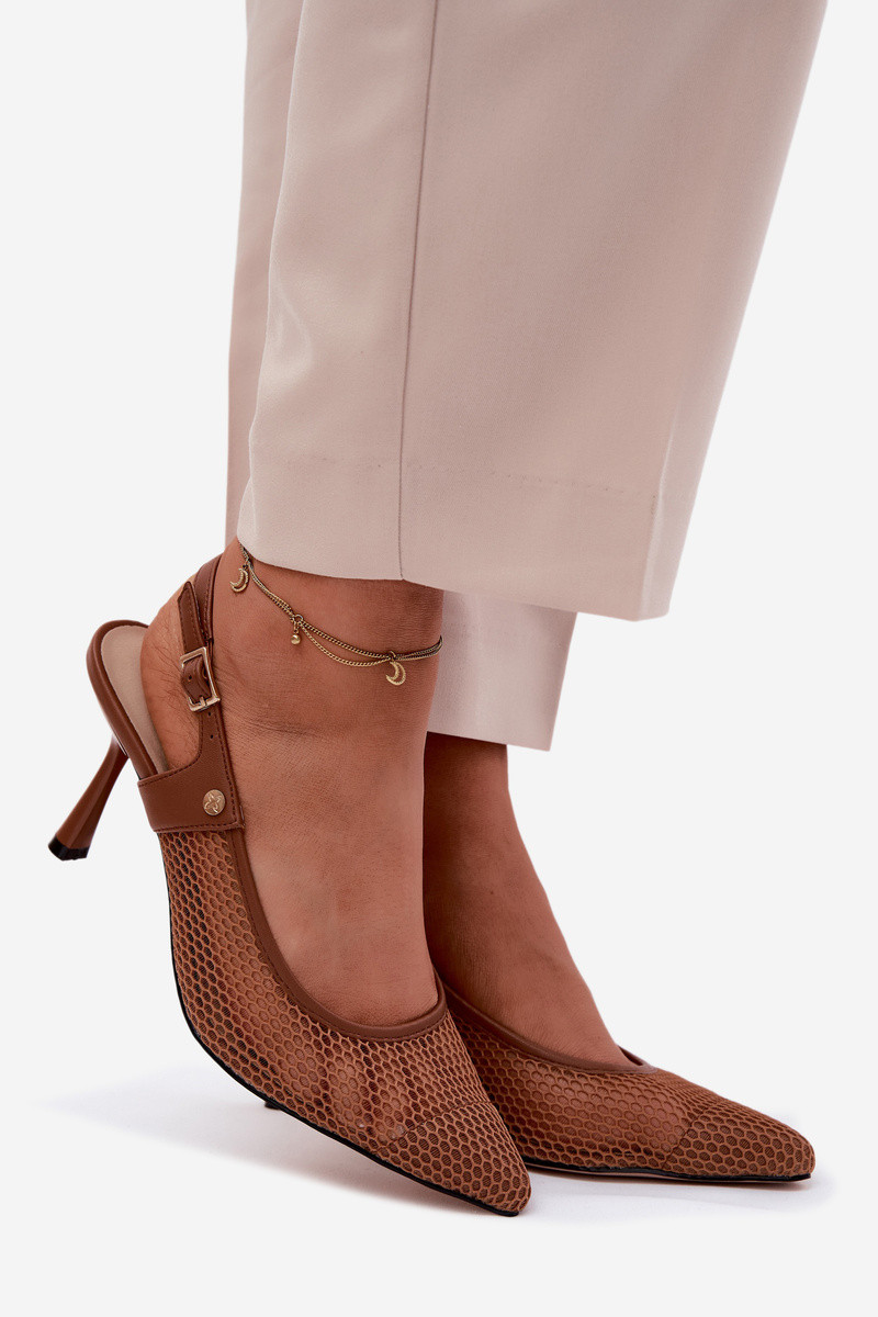 Oda Ažūrinės basutės Bateliai Moteriškas su plonais kulniukais Tai turiciejka K7507-29 rudos spalvos