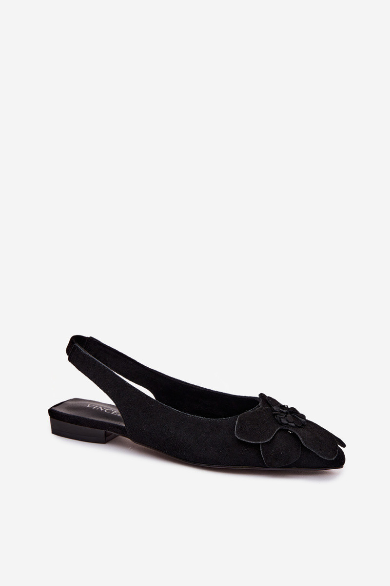 VINCEZAbasutės Oda iš zomšos su plačiais kulniukais Su puošniais Gėlė Vinceza 66951 juodos spalvos